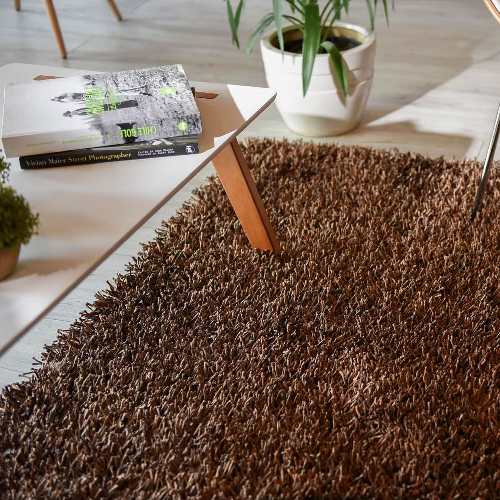 Alfombra Shaggy Mix 120×170 cm Café Just Home Collection, una alfombra ideal para combinarla con colores vivaces, ya que tiene una fuerte personalidad, también es ideal para hacer contraste con colores de la misma gama, aportando una paleta monocromática a tu decoración, por recomendación del fabricante, hay que lavarla siempre con shampoo para alfombra y también utilizar antideslizante para fijar la alfombra.