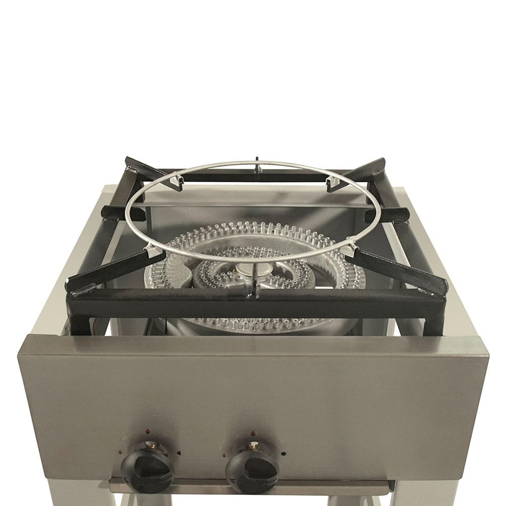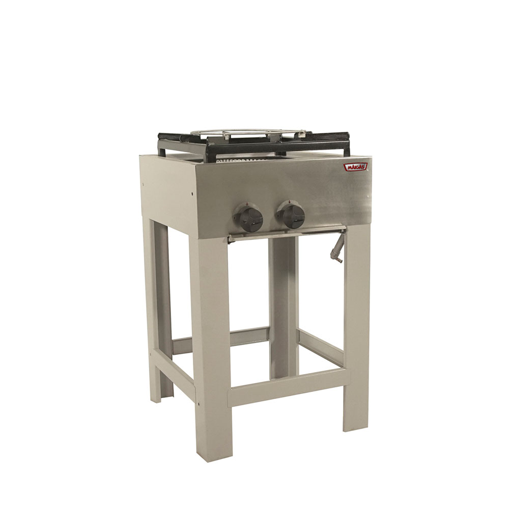 Quemadores industriales de aluminio de 180 mm. y 310 mm. de diámetro, comandados por llaves de 3 posiciones con dispositivo de seguridad.