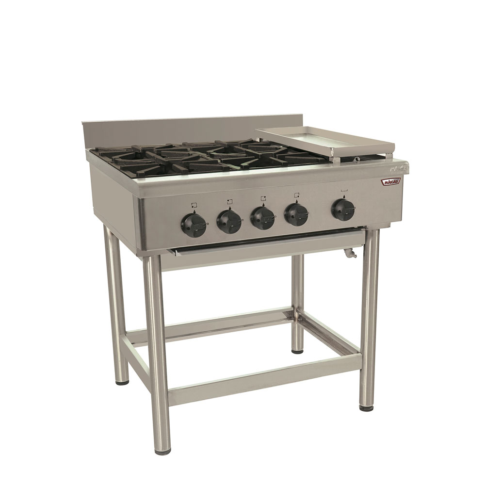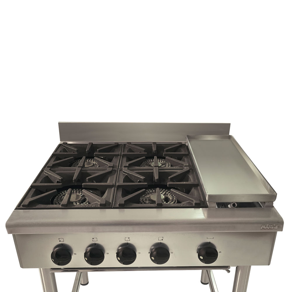 Quemadores industriales de aluminio de 140 mm de diámetro, comandados por llaves de 3 posiciones con dispositivo de seguridad.