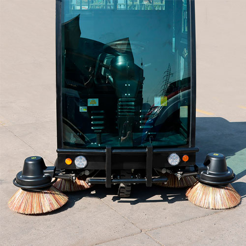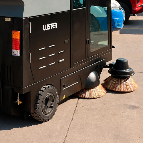 Barredora hombre a bordo a batería, esta máquina está diseñada para barrer pisos en áreas industriales y residenciales, calles de transeúntes, estacionamientos, plazas públicas, etc. Puede usarse para limpiar cáscaras de frutas, polvo, hojas, colillas de cigarrillos y otros desechos.