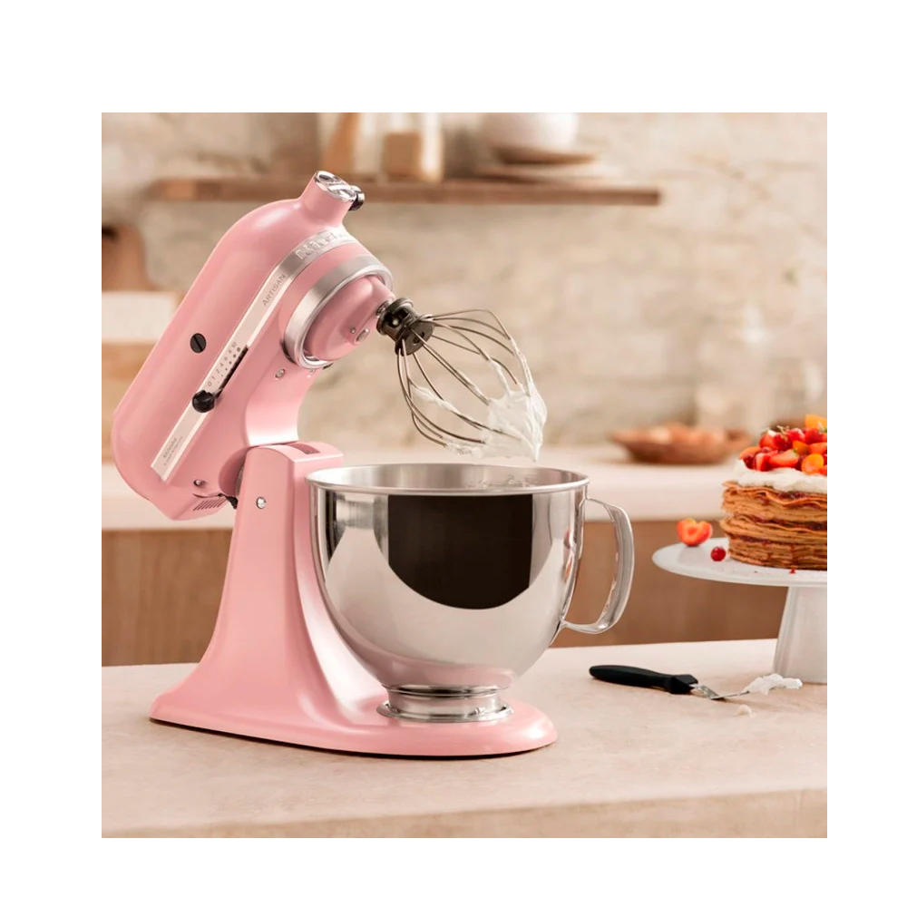 Deléitate con la dulzura única de la batidora de pedestal KitchenAid Artisan Plus Dried Rose. Con una apariencia que evoca la delicadeza de las flores, su cálido color rosa y acabado suave aportará toques de luz y color a tu cocina.