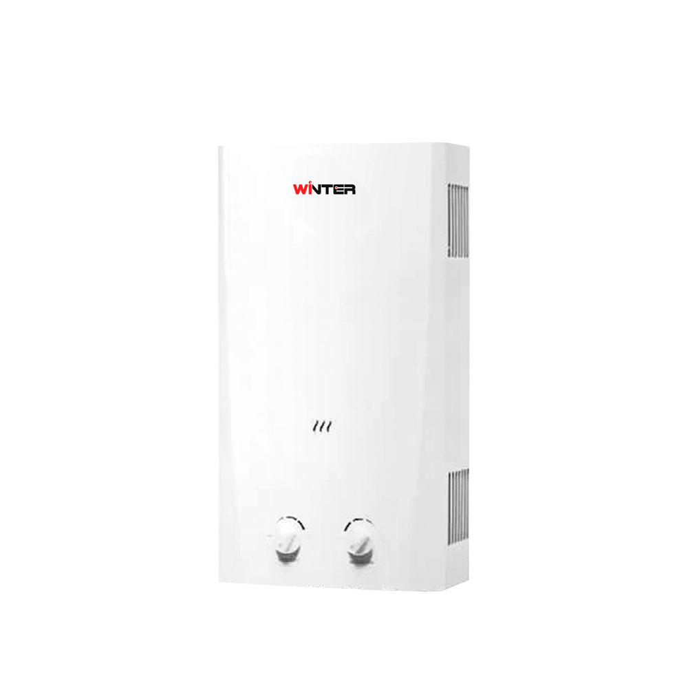 Calefont tiro natural 10 litros para gas natural. Sistema de encendido ionizado automático. Regulación en pasos de agua y gas para uso según estación. Usa 2 pilas tipo D.