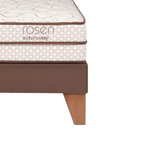 Tiene un Topper de espuma soft que otorga una resiliencia suave. Su cubierta superior es de tela tejido punto de origen belga de altísima calidad. Su base es de estructura de madera con tela Jacquard (sin acolchado) de color café óxido, y su cubierta superior tiene tela antideslizante que evita el desplazamiento del colchón. Las patas son de madera con terminaciones metálicas de acero, que le otorgan gran estabilidad y un look similar al de un moderno mueble.