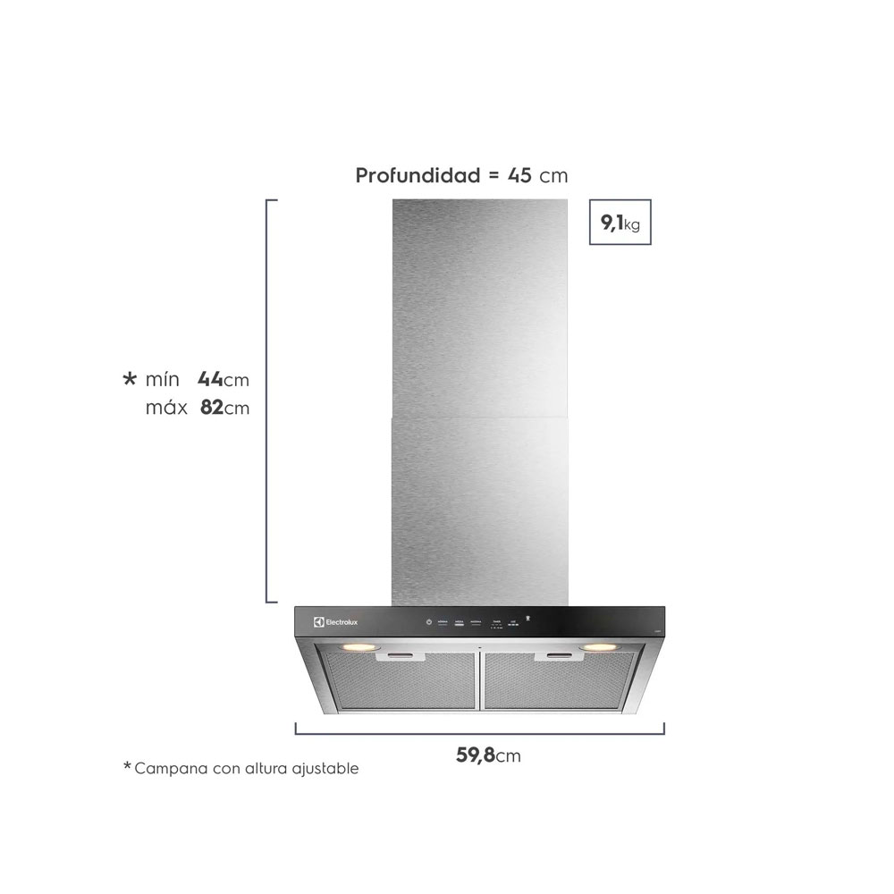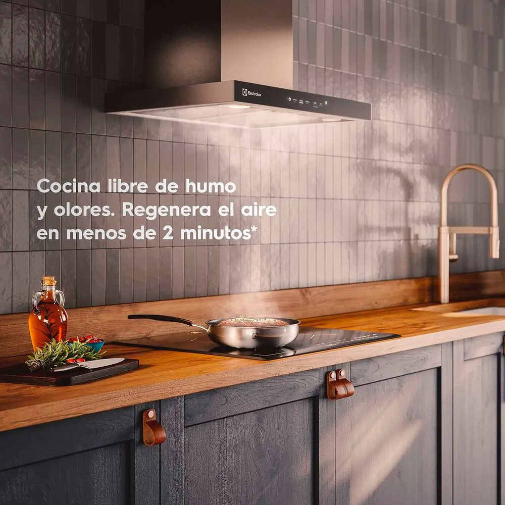 Campana de Pared Electrolux de 60cm Experience con Alto Poder de Succi贸n y Panel Full Touch CE6TF La Campana de Pared Electrolux de 60cm Experience con Alto Poder de Succi贸n y Panel Full Touch CE6TF presenta modernidad y eficiencia, garantizando un ambiente libre de impurezas con su alto poder de succi贸n El Alto Poder de Succi贸n ofrece eficiencia en la retenci贸n de humo y grasas durante la preparaci贸n de tus recetas. Renueva el aire en menos de dos minutos鹿. Ten tu cocina libre de humo y olores indeseables, de manera efectiva y segura para toda tu familia. Adem谩s, el Panel Intuitivo Full Touch cuenta con LED blanco, una interfaz diferenciada y m谩s intuitiva que proporciona una mejor performance y experiencia de usuario. Cuando la campana est谩 instalada en modo purificador, con la Se帽al Cambio de Filtro la alerta se enciende en la pantalla LED, asegurando el rendimiento del producto haciendo el recambio de filtro en el momento indicado. La Luz LED虏 te da una mayor claridad y visibilidad de los alimentos. Al cocinar mantienes los colores naturales de la comida. El ajuste de luz permite crear una atm贸sfera diferente dependiendo de la ocasi贸n. El Dise帽o de Acero Inoxidable combina lo mejor de la resistencia del acero con la ligereza del vidrio, con mucha elegancia y sofisticaci贸n a tu cocina. Con un acabado impecable, la campana tambi茅n es un elemento de decoraci贸n que agrega belleza al ambiente. Para facilitar a煤n m谩s el uso, la campana posee Funci贸n 2 en 1, que cambia entre los modos extractor y depurador, entregando m谩s flexibilidad y versatilidad de uso. Por lo tanto, tendr谩 m谩s flexibilidad y versatilidad. La Filtraci贸n Dual posee filtros de aluminio extra铆bles que capturan y retienen hasta un 75 %鲁 de la grasa. El filtro de carb贸n activado mantiene tu cocina libre de olores no deseados. Los dos son aptos para lavavajillas. Para tener a煤n m谩s practicidad, la campana ofrece 3 Velocidades que puedes ajustar entre baja, media y alta para regular seg煤n uso. Decide de acuerdo a la receta, garantizando una mayor eficiencia de tu campana extractora. Adem谩s, cuando la Funci贸n de Temporizador est谩 activada, permite que la Campana de Pared Electrolux CE6TF permanezca en funcionamiento durante un tiempo extra y se apague autom谩ticamente, renovando el aire de la cocina.