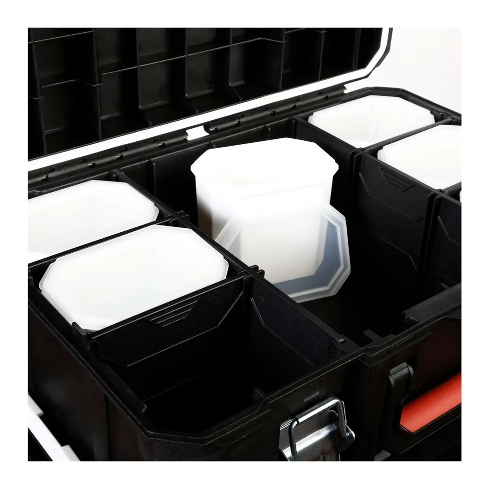 El carro para herramientas 3 en 1 de Ubermann cuenta con ruedas de 70 mm de diámetro para facilitar su transporte, un cierre metálico para mayor seguridad y soporta hasta 20.4 kg de peso. Su estructura interna de goma espuma protege tus herramientas y su diseño modular te permite personalizar el espacio interior. Además, está disponible en color negro y está fabricado en plástico lo que lo hace resistente y duradero.