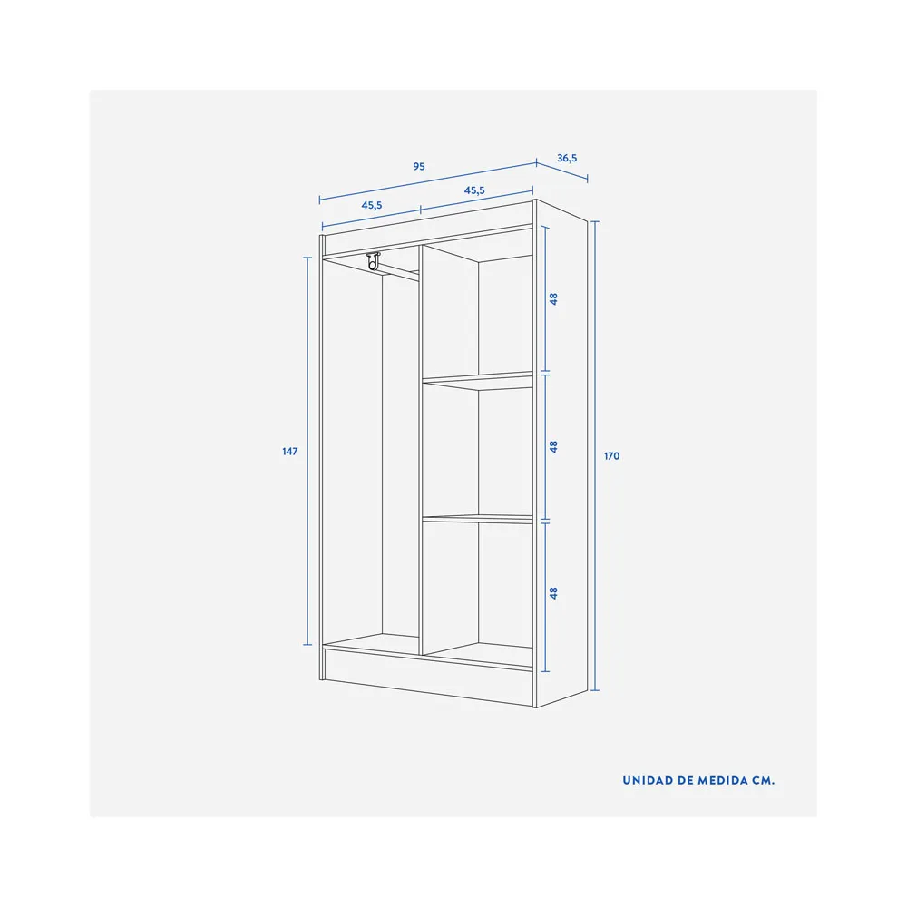 El acabado en color wengue le da una presencia fuerte y elegante al mueble, adaptándose fácilmente a decoraciones modernas. Su estructura en melamina garantiza durabilidad y resistencia frente a manchas, rayaduras y bacterias.