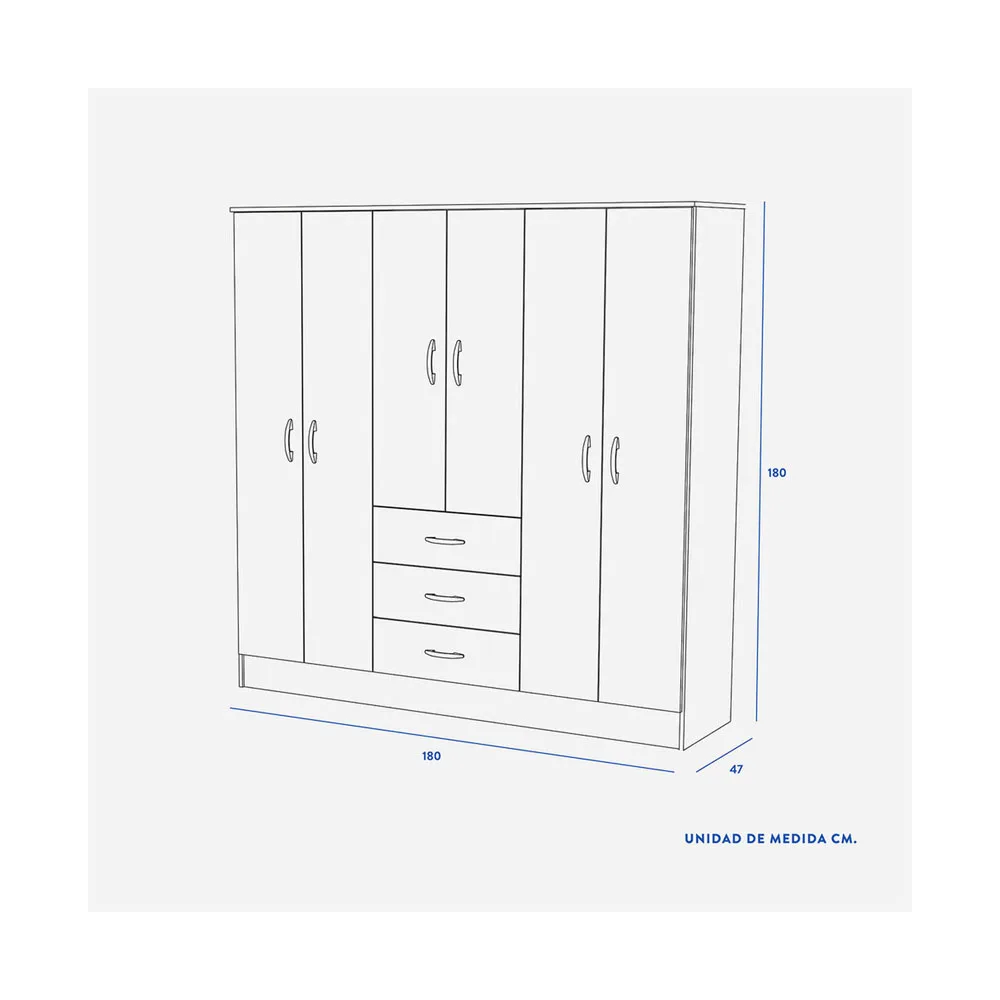 El Closet Maipo color Blanco聽 聽es la soluci贸n perfecta para tu organizaci贸n. Con 6 puertas abatibles y 3 amplios cajones, este mueble redefine el almacenamiento. Sus dimensiones de 180x180x47 cm ofrecen amplitud. Equipado con 4 barras para colgar y 3 repisas, maximiza tu espacio. Construido en melamina de 15 mm, asegura durabilidad. Este closet combina funcionalidad y estilo, proporcionando orden con un toque moderno. Con el Closet Maipo de CIC, tus prendas y accesorios encuentran su lugar en un mueble dise帽ado para realzar la organizaci贸n de tu hogar.