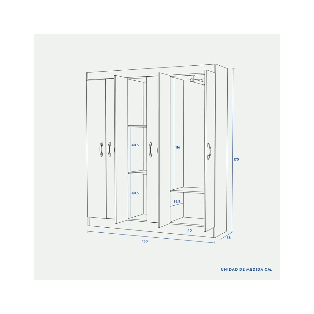 El amplio y cómodo Clóset 6 Puertas Laredo Cerezo es ideal para los amantes de la ropa. Sus 3 grandes espacios te permitirán guardar todo lo quieras, mantener tus prendas bien planchadas y dispuestas para cuando las necesites. Tiene un atractivo color cerezo y acabo mate para adecuarse a tu decoración perfectamente, mientras que sus terminaciones lo convierten en un modelo bonito y elegante.