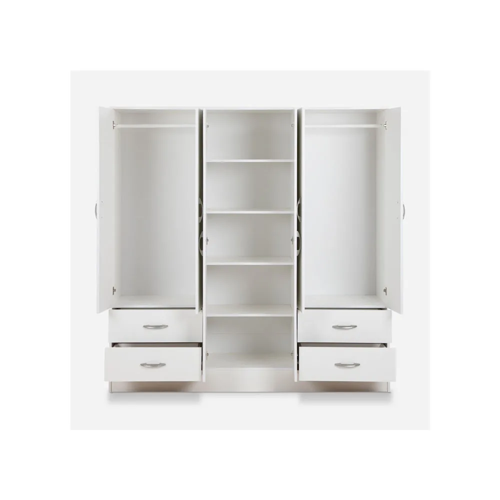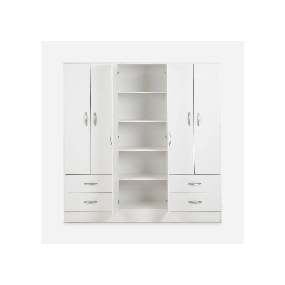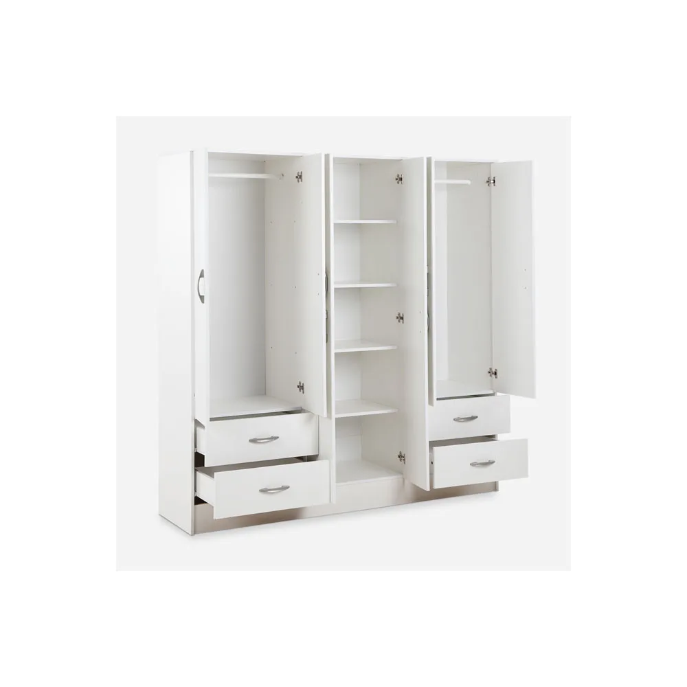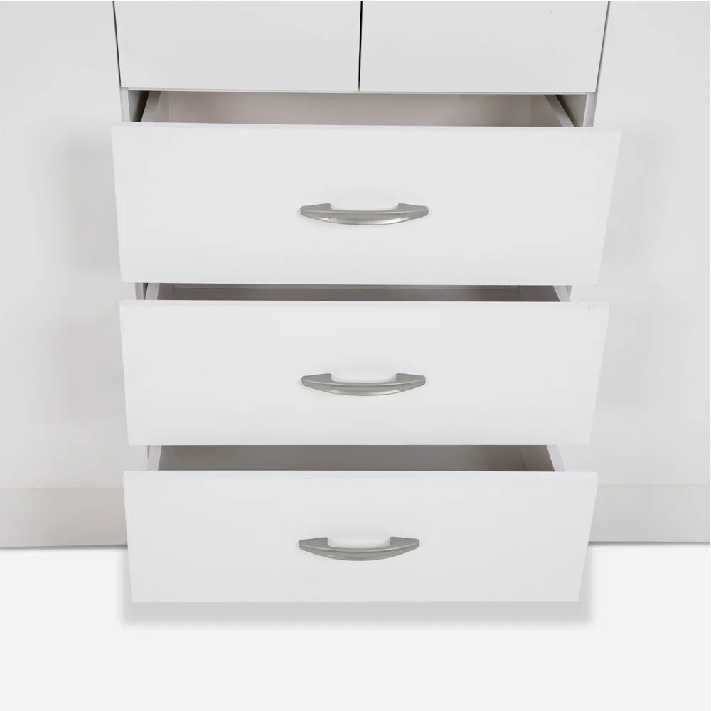 Fabricado en melamina blanca de 15 mm, destaca por su resistencia y su facilidad de limpieza. Su interior amplio permite distribuir prendas por tipo y frecuencia de uso, lo que lo hace muy práctico.