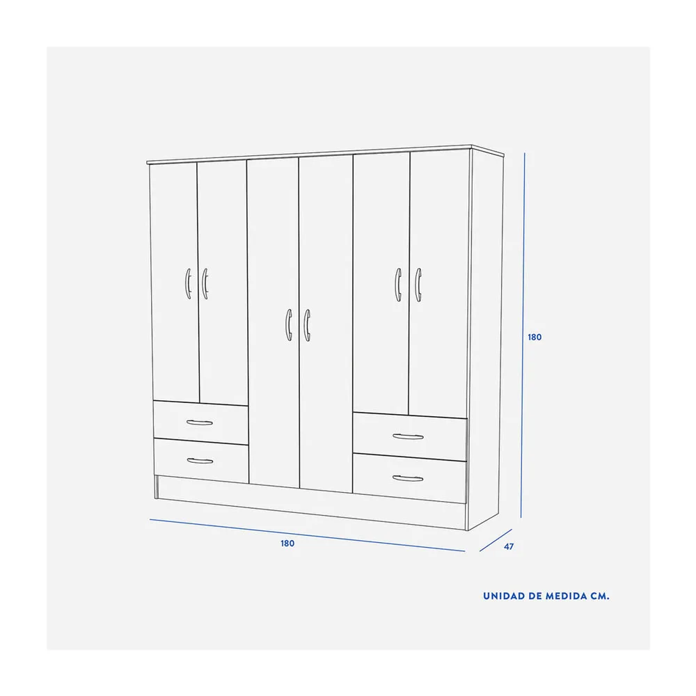 El clóset Maipo blanco de 6 puertas y 4 cajones es una alternativa fresca y luminosa que aporta orden y estilo al dormitorio. Ideal para ambientes de inspiración minimalista o nórdica, este modelo ofrece funcionalidad total sin sobrecargar el espacio.