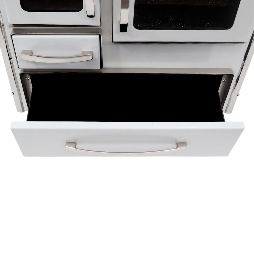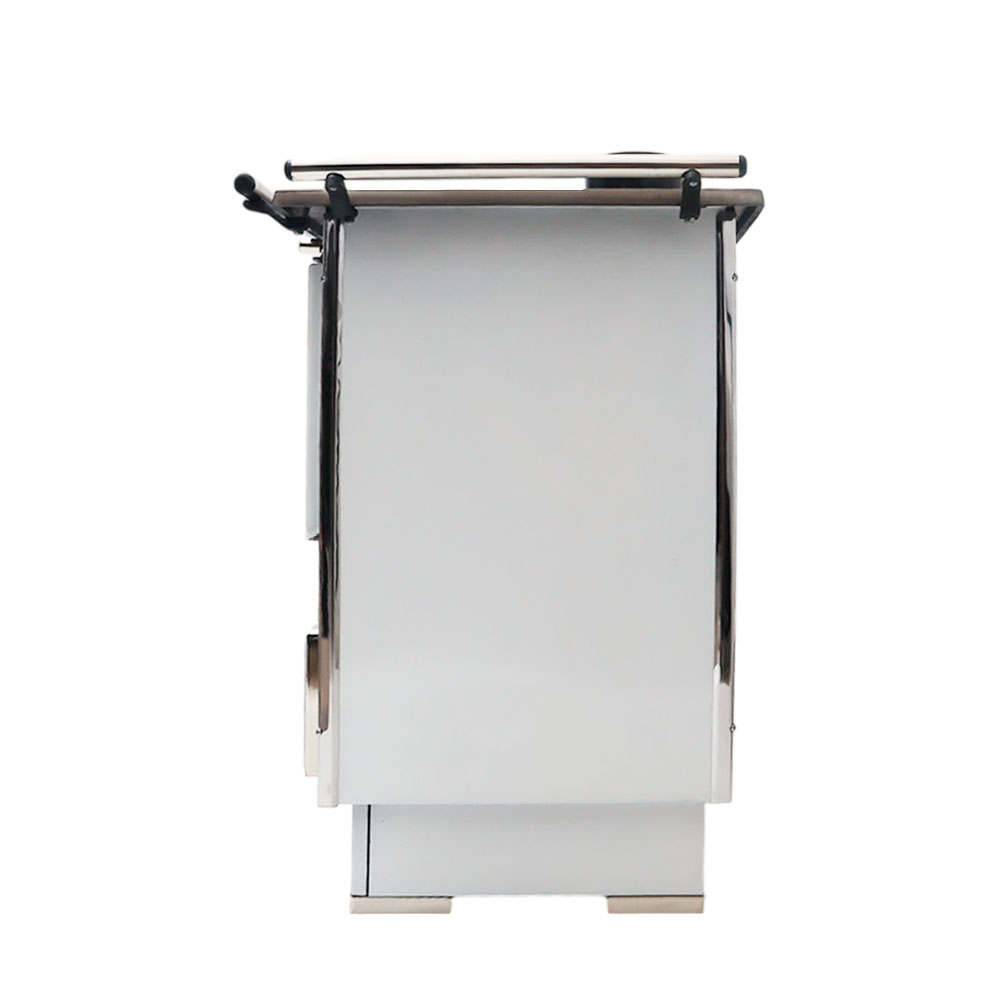 – Frente, costados, puertas, horno, bandejas doble confeccionadas planchas de acero carbono laminado frío 0.8 ml. Espesor.