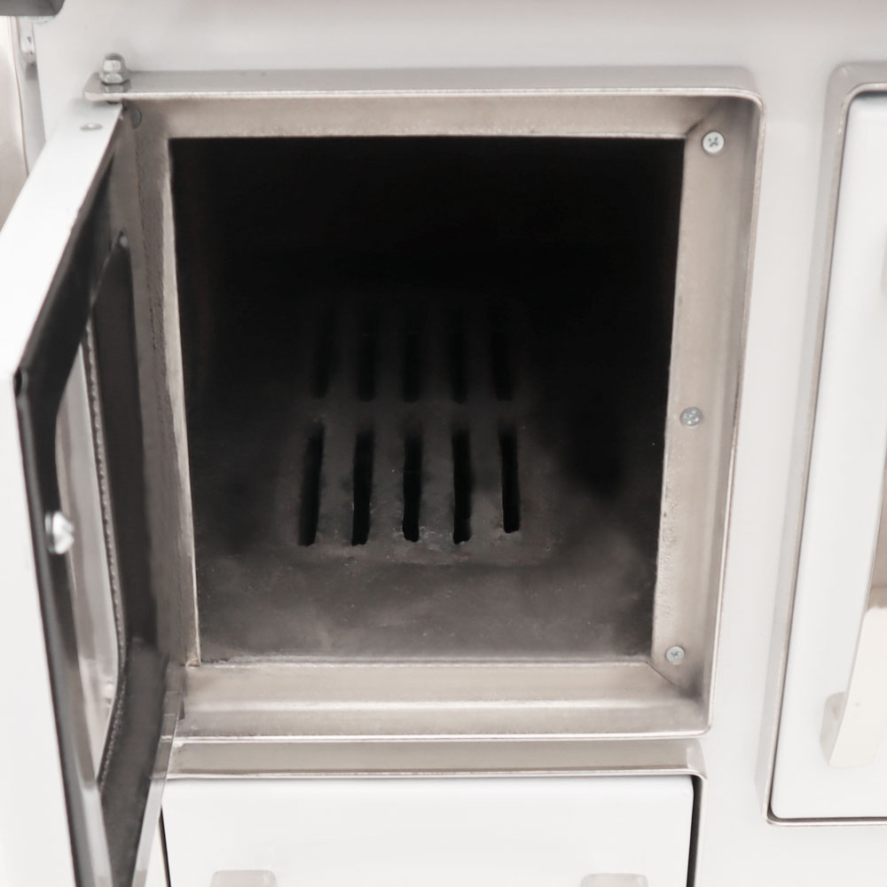 – Fogón: Ladrillos y parrilla de hierro fundido adheridas con mezcla especial de cemento.