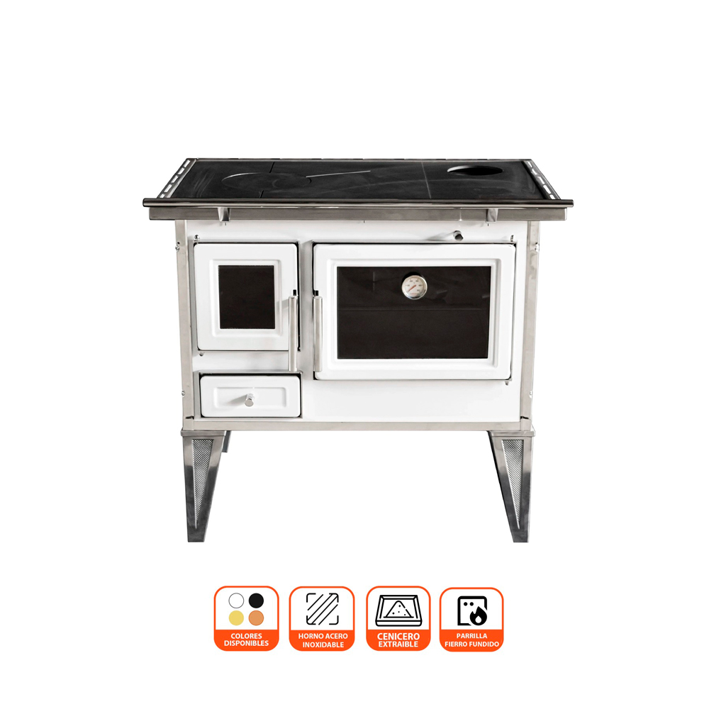 Su diseño mejorado ofrece visión directa tanto a la llama del fogón como a su tradicional horno, permitiendo visualizar su interior sin tener que abrir la puerta.
