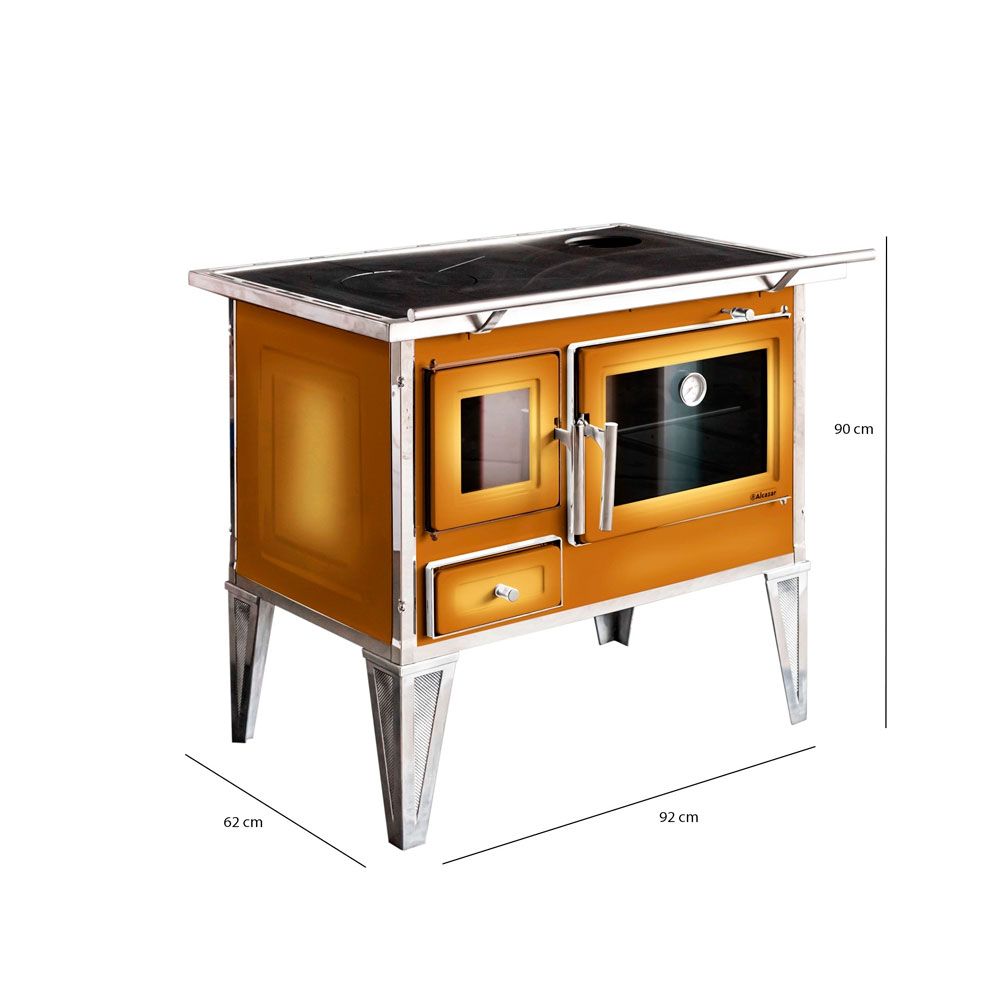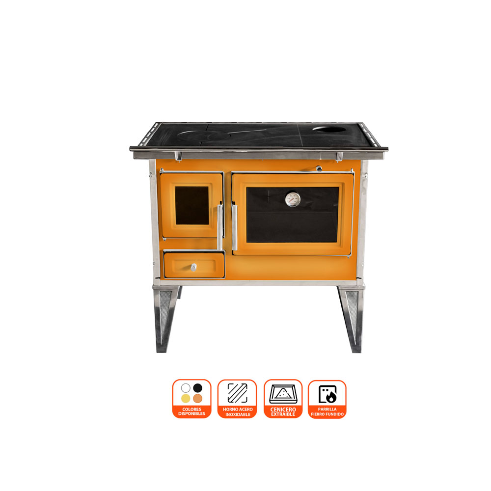 Su diseño mejorado ofrece visión directa tanto a la llama del fogón como a su tradicional horno, permitiendo visualizar su interior sin tener que abrir la puerta.