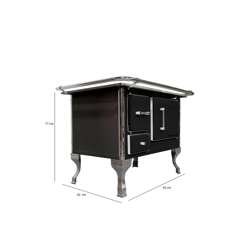 Su fogón enladrillado y su estructura robusta entregan un producto tradicional pensado para largas horas de funcionamiento, entregando la calidez de Alcázar a miles de cocinas de familias Chilenas.