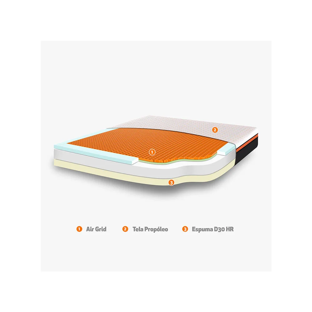 • Estructura de Resortes………..AirGrid: Rejilla de gel flexible que se adapta de forma inteligente al cuerpo, distribuyendo la presión de forma uniforme, mientras brinda comodidad sin presión