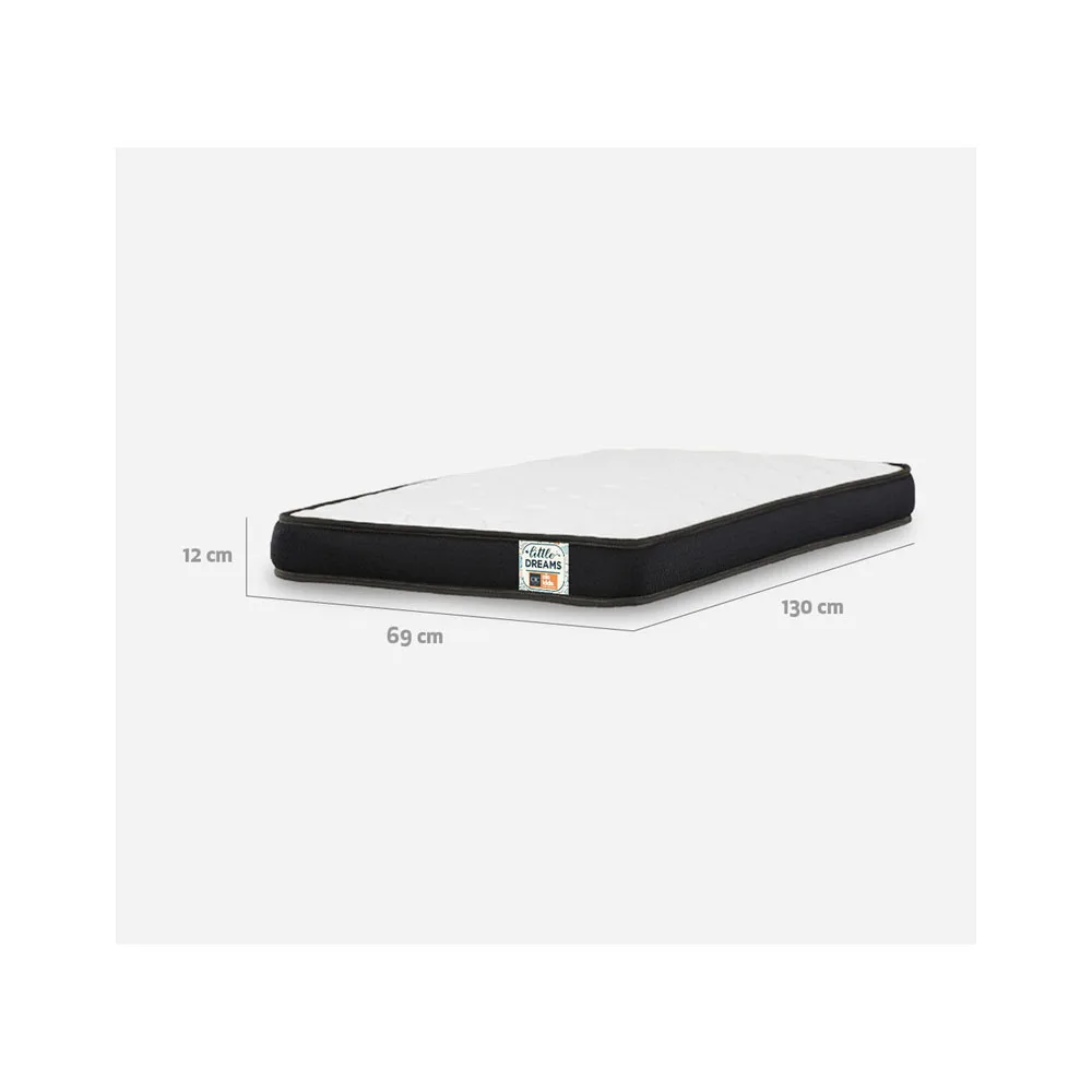 Descubre el colchón de cuna Colchón Cuna Pack and Play Little Dreams 130×69, diseñado para proporcionar el mejor descanso y comodidad a los más pequeños de la casa. Con su cubierta tipo Plain Top y su resistente tela Jacquard importada, este colchón ofrece una superficie dúctil y suave para el bebé.El diseño de acolchado continuo brinda una sensación de suavidad y confort, mientras que el relleno de lámina de poliuretano 7L y napa 100 gr garantiza un soporte adecuado para el descanso saludable del bebé. Su estructura de espuma de densidad 21 ofrece una superficie firme y segura para el sueño de los más pequeños.Con dos lados de uso, el colchón «Little Dreams» se adapta al crecimiento del bebé, proporcionando el soporte necesario durante todas las etapas. Brinda sueños felices y un descanso placentero para los pequeños soñadores.