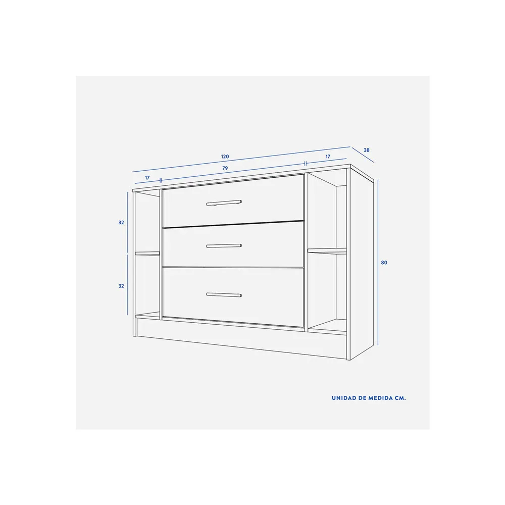 Cómoda 3 Cajones Rigel Olmo Blanco: estética nórdica con máxima funcionalidad