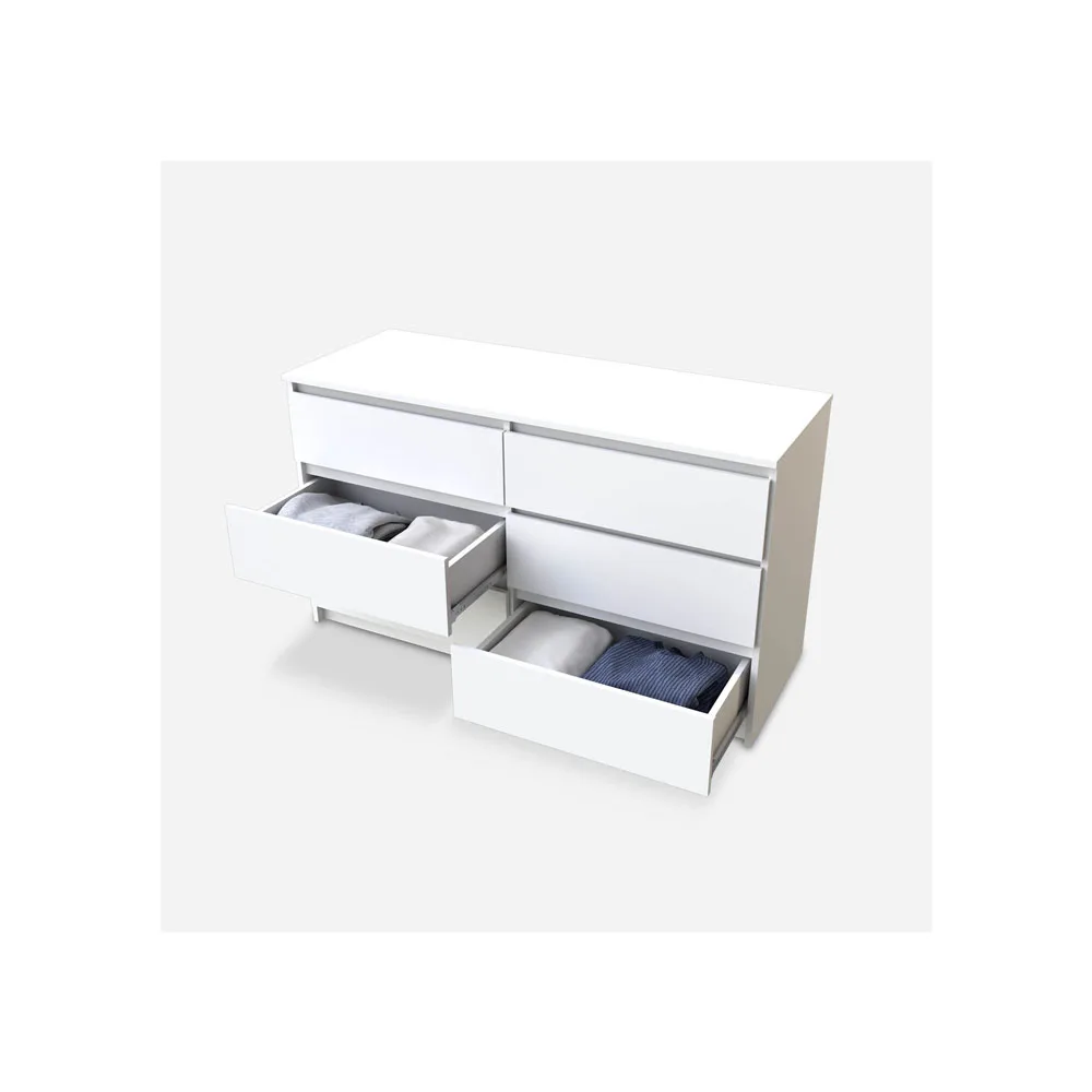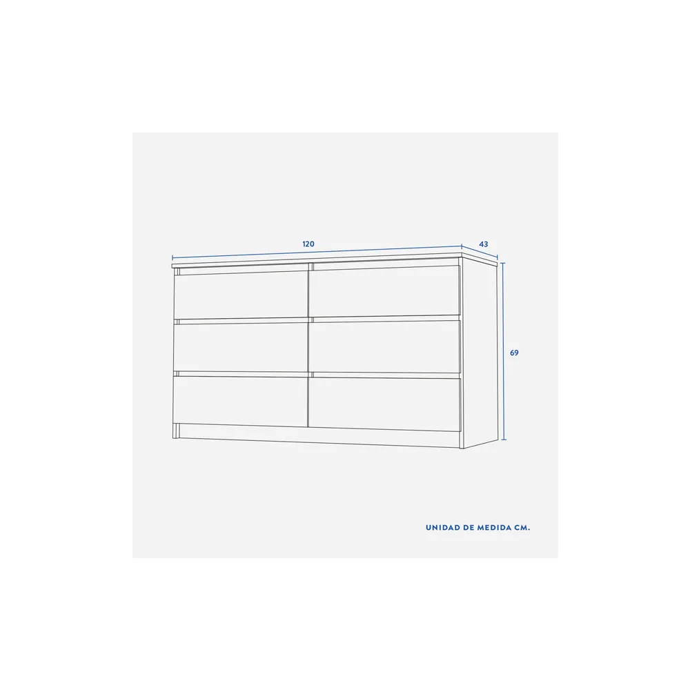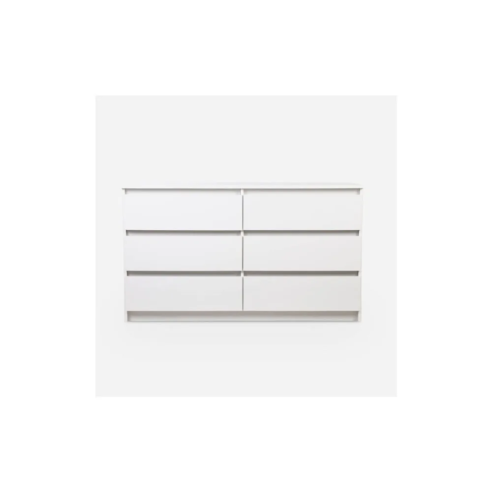 La cómoda Nórdica Blanca de CIC es una opción perfecta para ambientes luminosos y minimalistas. Su diseño limpio y su color blanco permiten integrarla fácilmente en diferentes estilos decorativos, mientras que sus seis cajones ofrecen un amplio espacio para almacenar con orden y estilo.