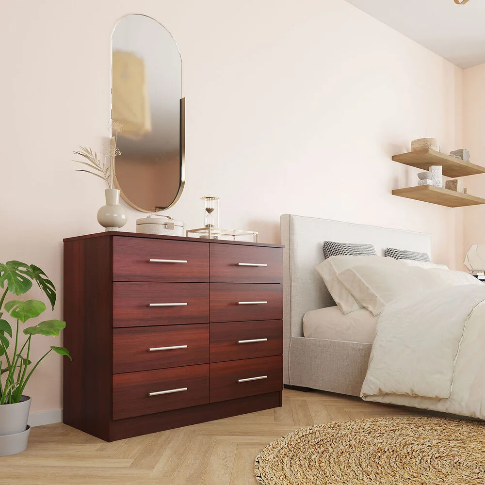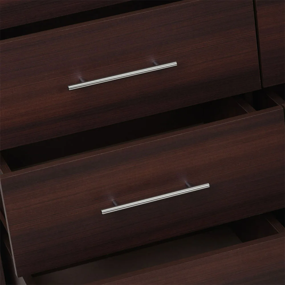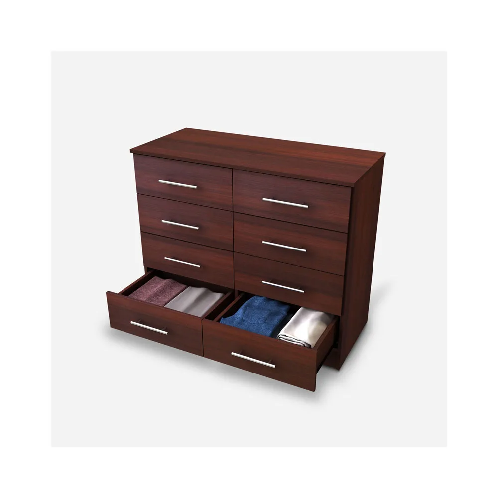 La cómoda Polux wengue de CIC se presenta como una solución funcional y elegante para quienes necesitan máximo almacenamiento en un formato compacto. Su color oscuro y sofisticado le otorga personalidad a cualquier espacio, mientras sus ocho cajones permiten mantener todo en orden.