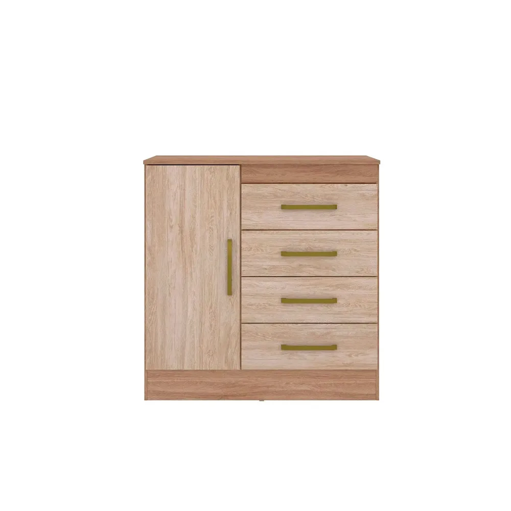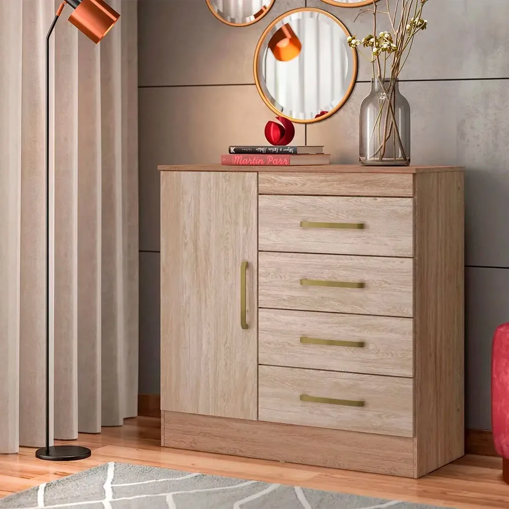 Comoda Montevideo 1 puerta 4 Cajones 92 x 91 x 41 Cm Nogal/Vainilla