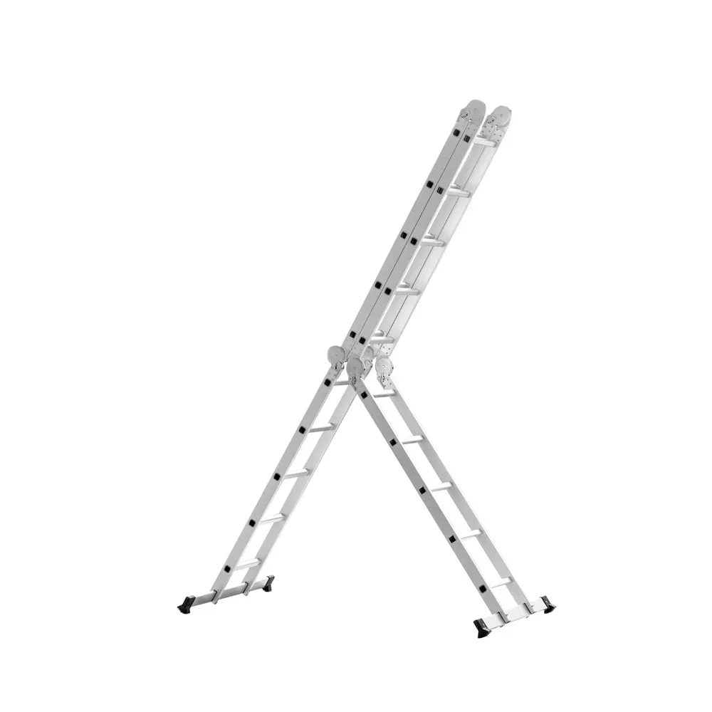 Fabricada en aluminio resistente, esta escalera articulada te ofrece una solución multipropósito. Su diseño plegable permite un fácil almacenamiento y transporte. Los posa pies antideslizantes garantizan tu seguridad mientras trabajas. Es ideal para trabajos profesionales gracias a su capacidad de carga de 150 kg y sus 20 escalones.