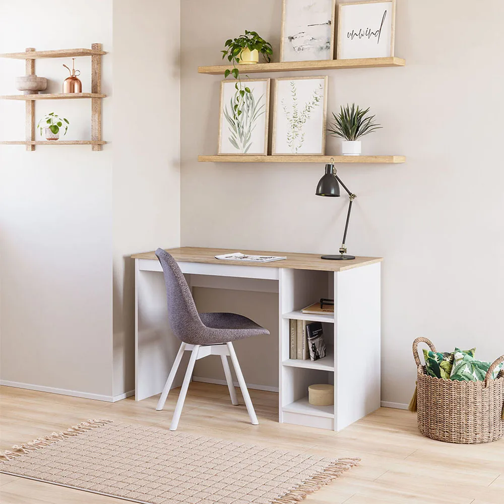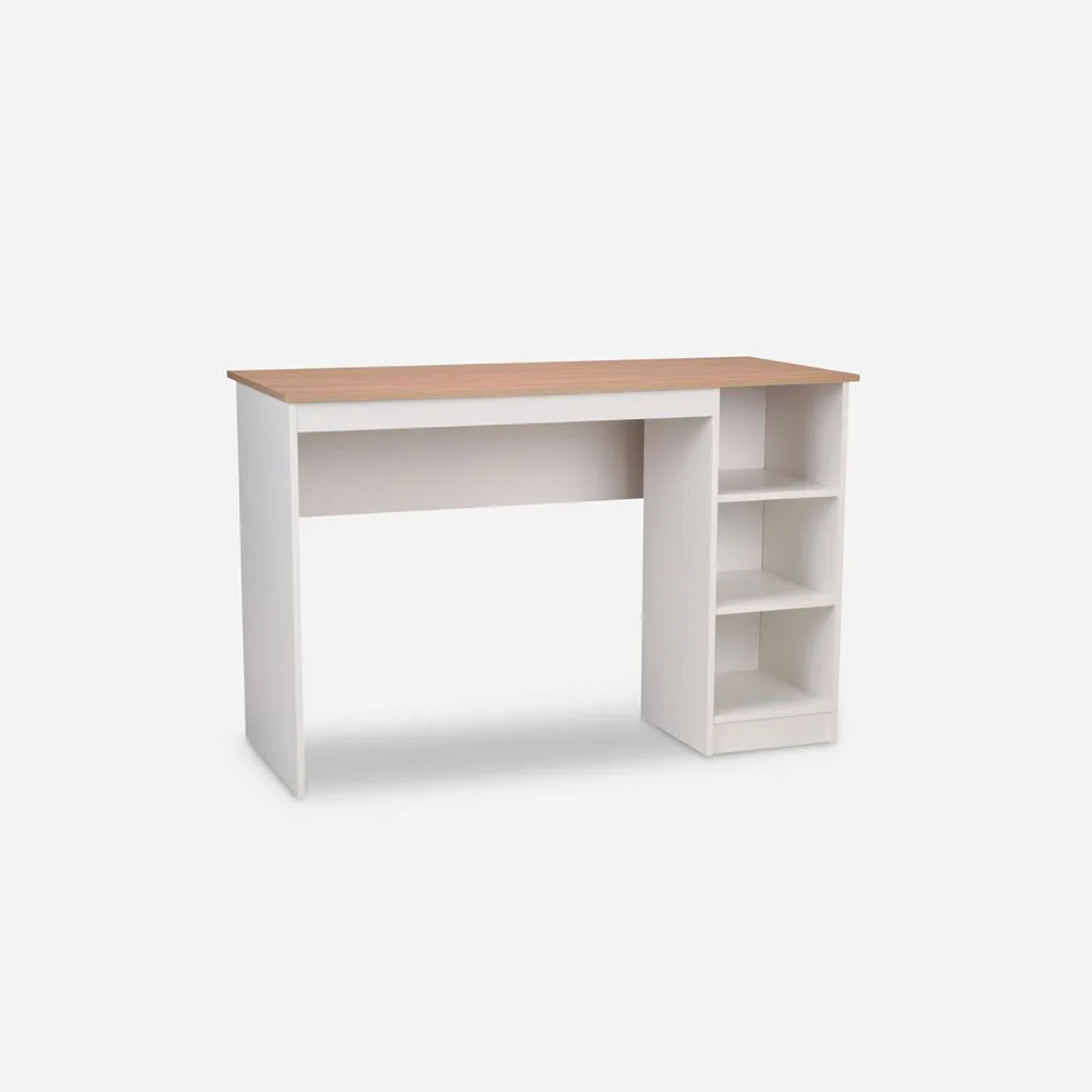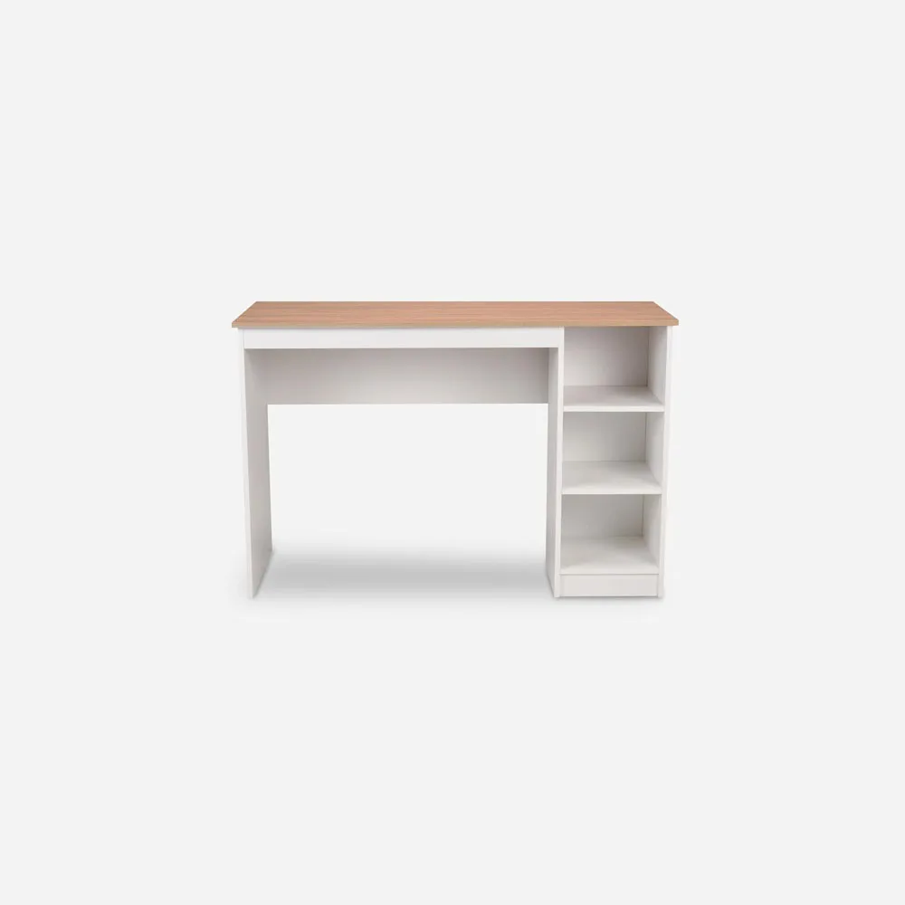 El Escritorio3 Repisas color blanco y olmo – alpino de CIC es la respuesta a tus necesidades de home office. Compacto y eficiente, mide 123x80x53 cms y cuenta con 3 amplias repisas. Fabricado en melamina de 15 mm de fabricaci贸n nacional, este mueble es vers谩til y duradero. Con una gran variedad de colores disponibles, este escritorio se adapta a tu estilo mientras te ofrece accesibilidad y comodidad para trabajar o estudiar desde casa. Haz del espacio un lugar de productividad y elegancia con este imprescindible mueble.