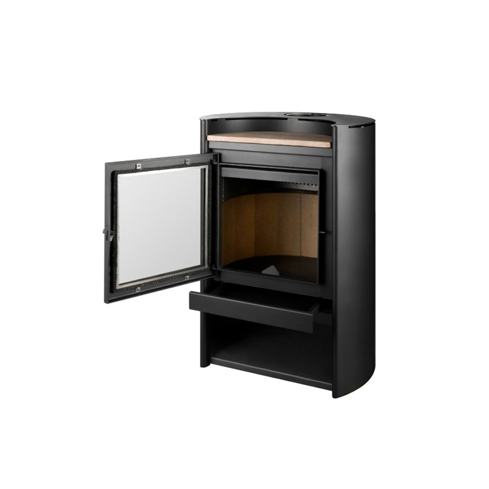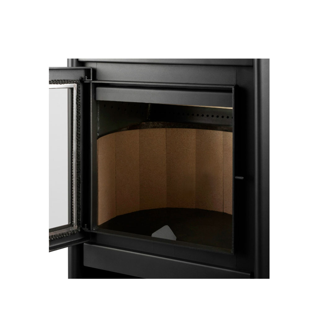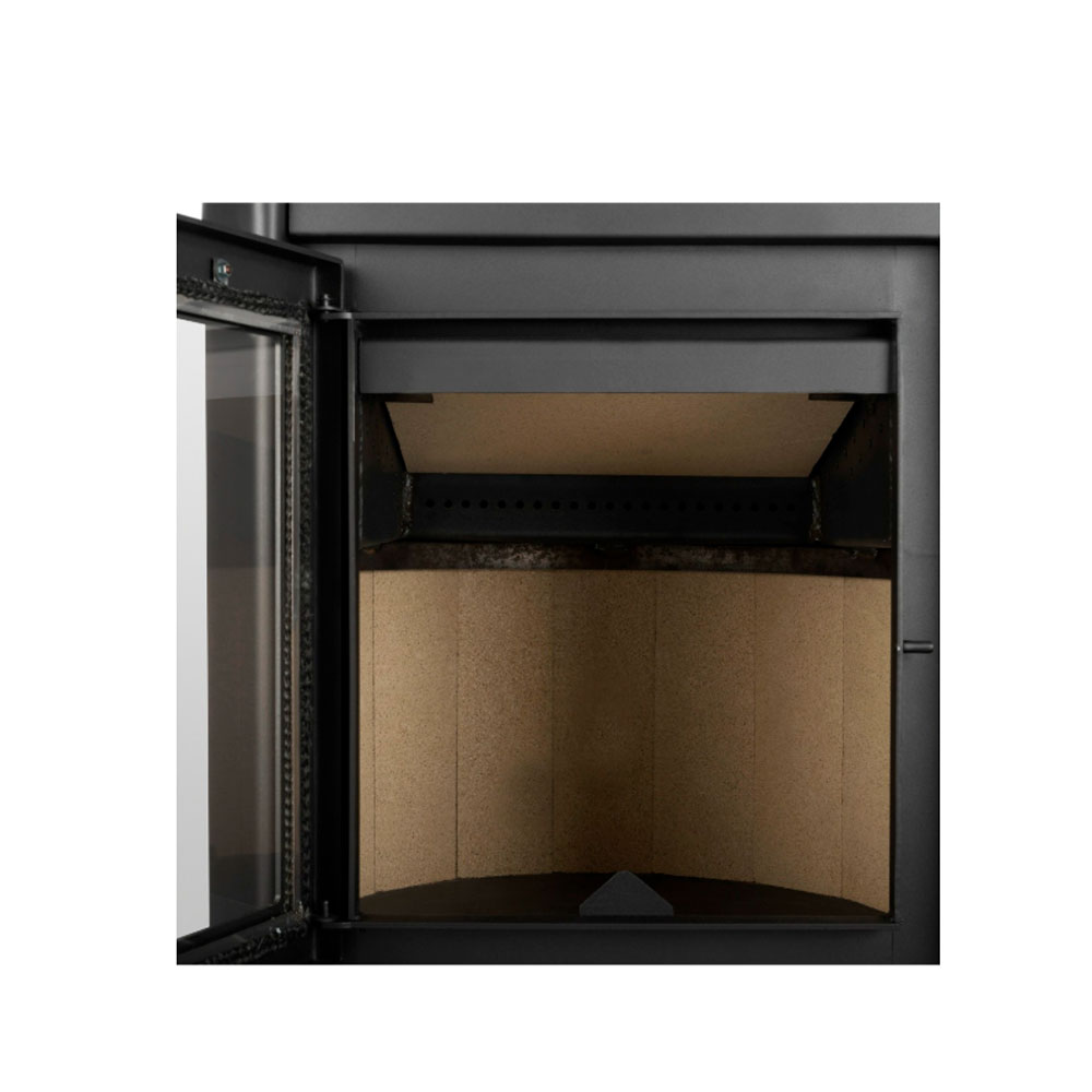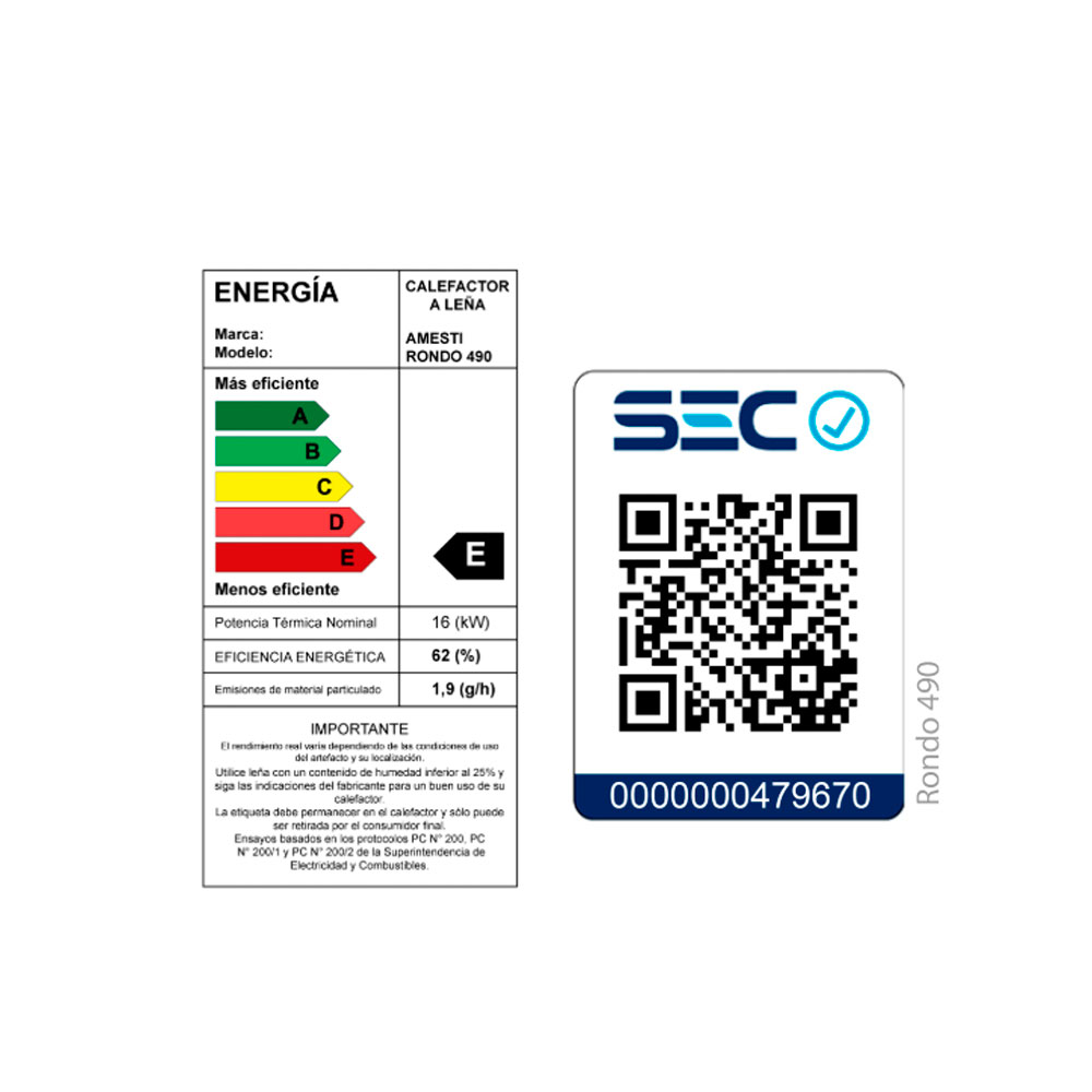 A diferencia de otras chimeneas tradicionales Estufa a leña Rondo 490 Amesti cuenta con una cámara de combustión optimizada para el uso dentro del hogar, con una puerta que impide que el humo se filtre fuera de la estufa. Cuenta con un cristal cerámico resistente al calor que permite ver la llama de forma segura, al mismo tiempo que ayuda a crear una atmósfera agradable y elegante.