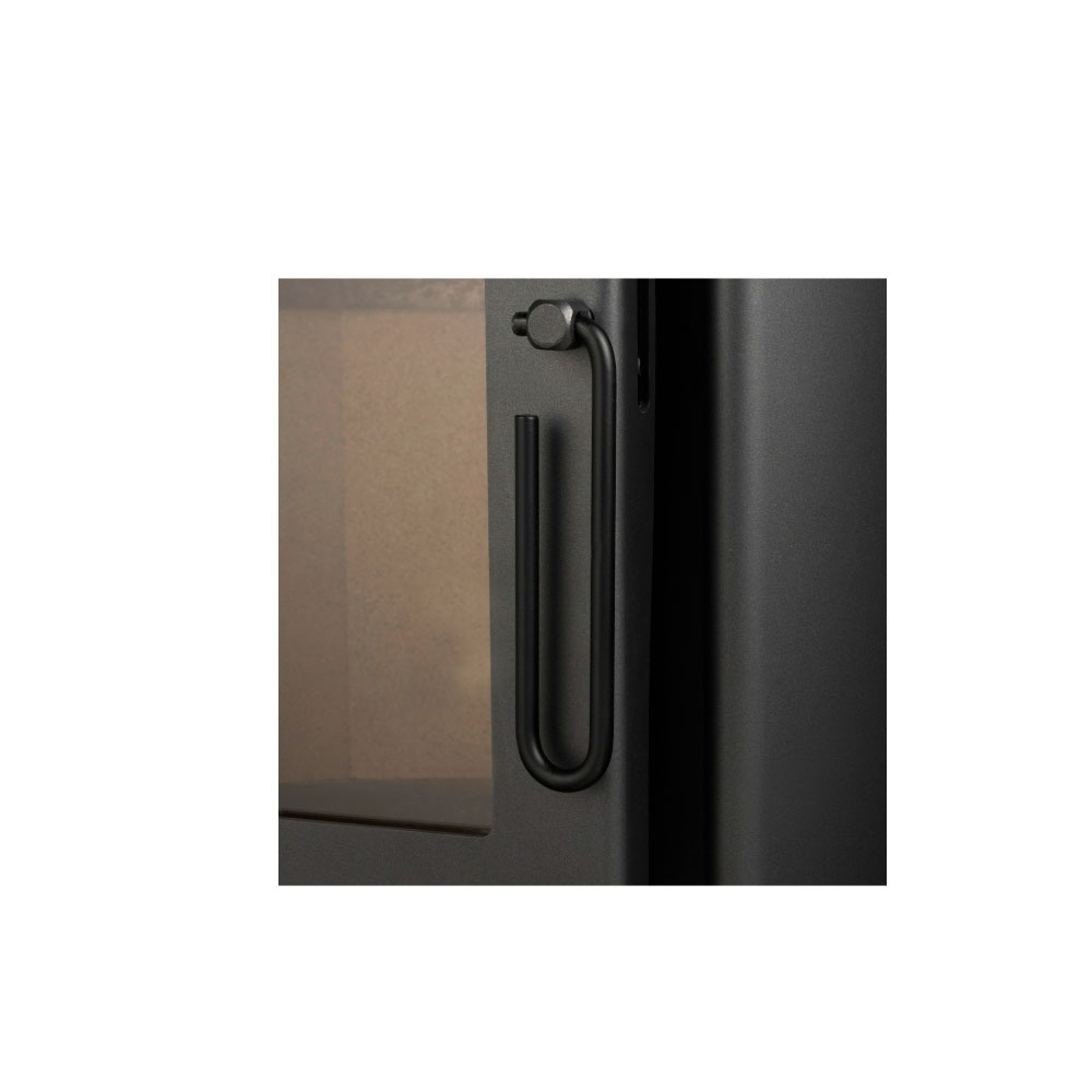 La puerta tiene un sistema de seguridad que se abre y se cierra gracias a una manilla fría que viene incluida con la Estufas a Leña. Debes colgar la manilla en un colgador junto con tu set de herramientas para que esta permanezca fría y puedas usarla con seguridad para manipular la puerta.