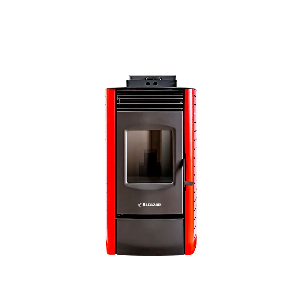 El modelo P1800 de la línea de estufas a Pellet Alcazar es una opción de calefacción sostenible y eficiente y utiliza pellets de madera comprimida como fuente de combustible.