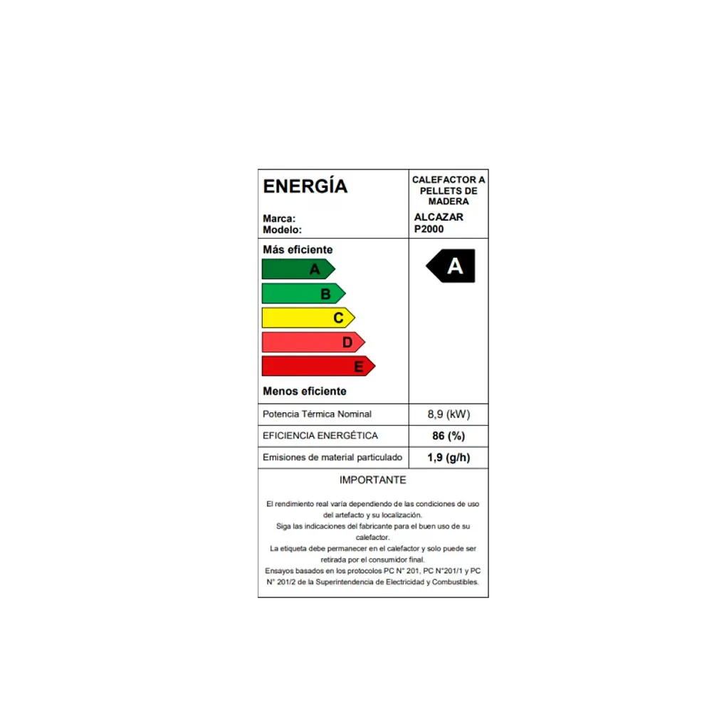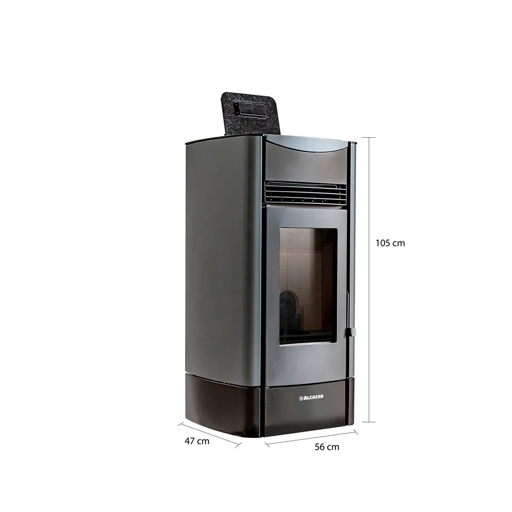 El modelo P2000 de la línea de estufas a Pellet Alcazar es una opción de calefacción sostenible y eficiente, la cual utiliza pellets de madera comprimida como fuente de combustible.