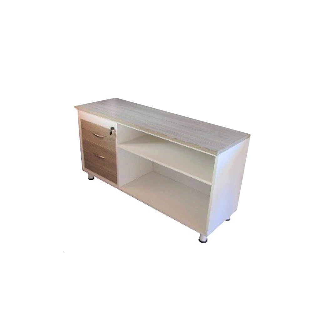MUEBLE COMPLEMENTO LATERAL FABRICADO EN ESTRUCTURA MELAMINA 18 MM COLOR A ELECCION, TRASERA MELAMINA 18 MM, PATAS METALICAS CON PINTURA AL HORNO COLOR BLANCO, PATINES REGULABLES, 2 CAJONES CON CIERRE CENTRALIZADO, REPISA INTERIOR, CUBIERTA CON CANTO RECTO PVC.