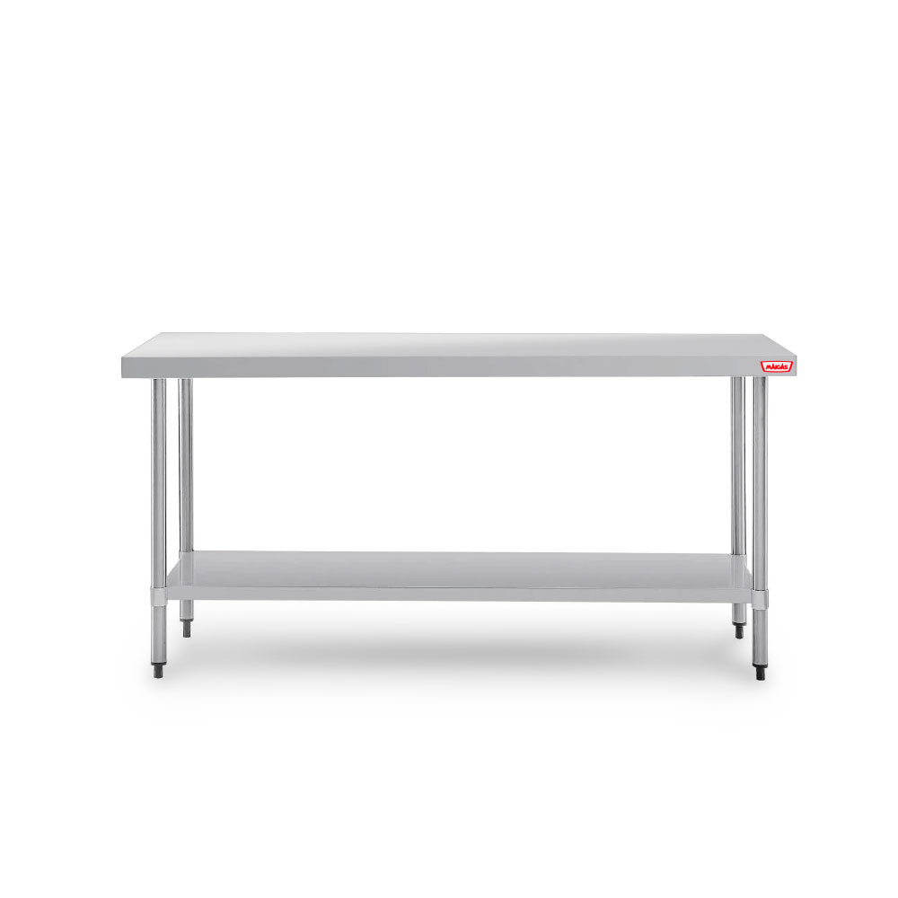 Diseñado para ambientes de alto trabajo, este mesón central ofrece una superficie higiénica, resistente y funcional para trabajos de preparación o soporte. Su estructura sólida y estante inferior optimizan el espacio de trabajo, es ideal para cocinas de tipo industrial, panaderías, incluso laboratorios que requieren durabilidad, limpieza fácil y eficiencia operativa.