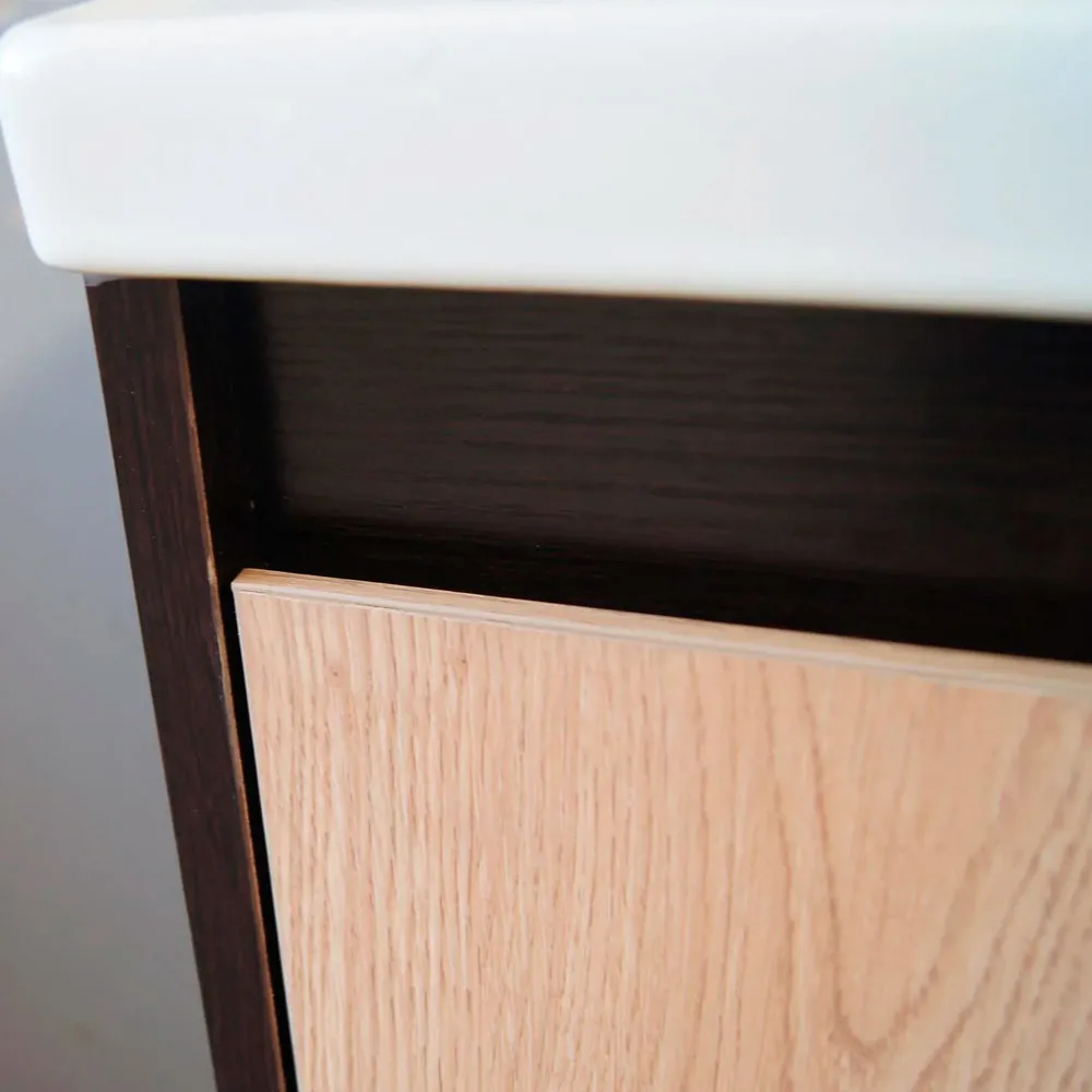 El Combo Mueble m谩s Espejo Cairo de Sensi Dacqua requiere armado y est谩 hecho de melamina. El mueble tiene un ancho de 60 cm, un alto de 85 cm y una profundidad de 47 cm. El lavamanos es de cer谩mica y tiene un agujero para la grifer铆a. El espejo tiene un tama帽o de 60×50 cm. El combo incluye el mueble, el lavamanos y el espejo, todo en una sola caja. El color del combo es roble/wengue/blanco.