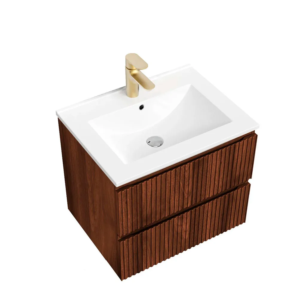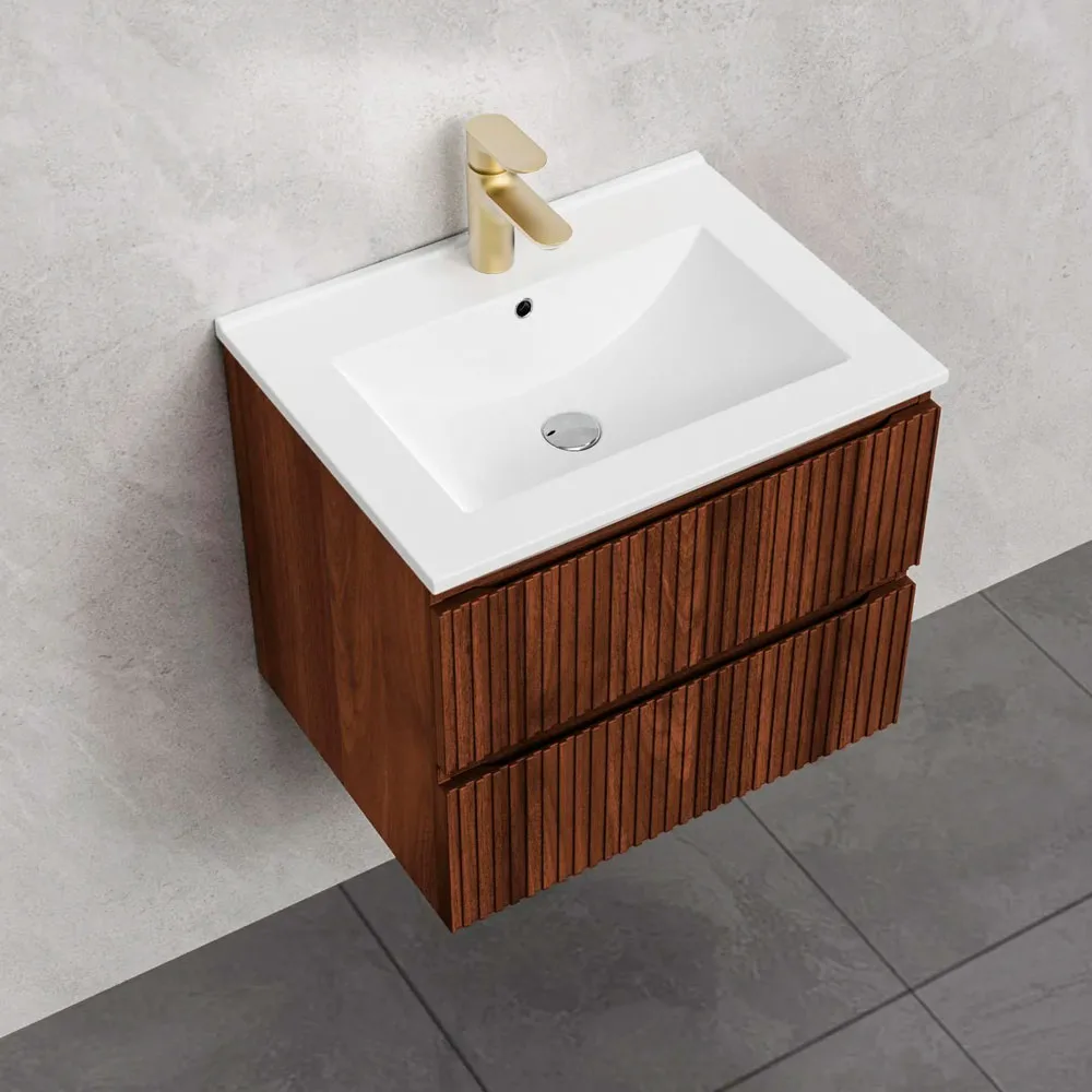 Este mueble de baño cuenta con cierre suave y dos cajones con correderas metálicas, ofreciendo un almacenamiento práctico y silencioso. Incluye un lavamanos de cerámica con un agujero y cuenta con anti rebalse. Su estructura de MDF y melamina asegura durabilidad y resistencia.
