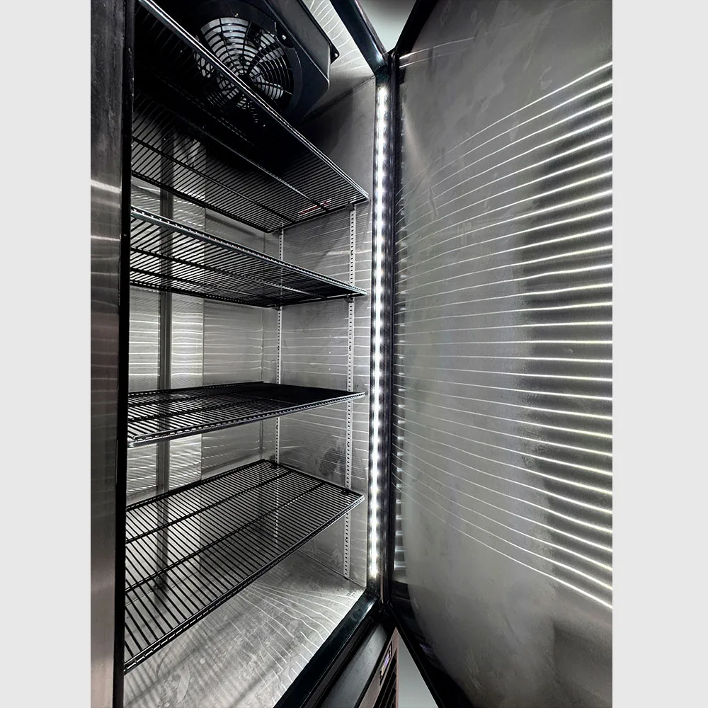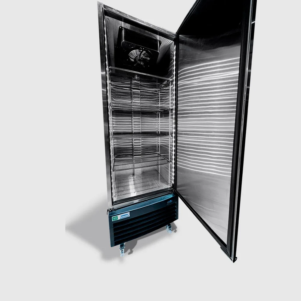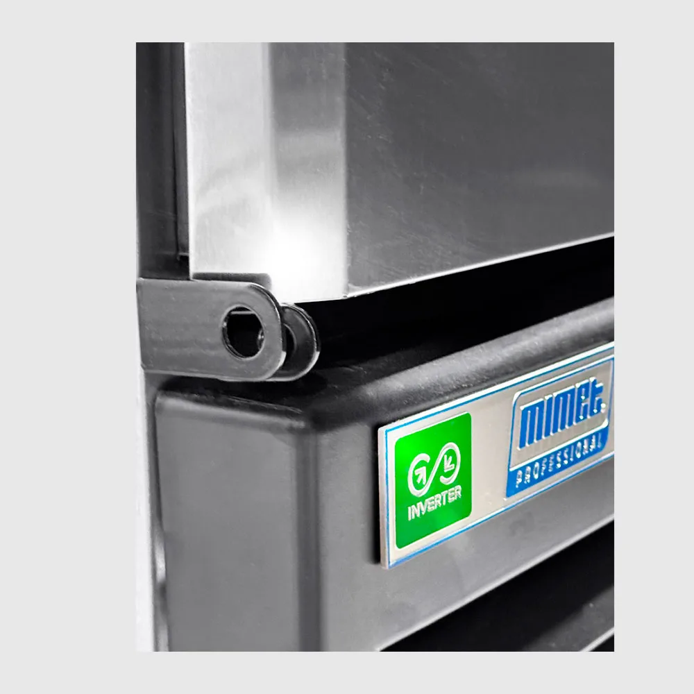 Refrigerador profesional de acero inoxidable con puerta abatible sólida, diseñado para rendir en los ambientes más exigentes de la cocina. Ideal para restaurantes, cafeterías y comida al paso. Su compresor Inverter asegura eficiencia energética, alto rendimiento y durabilidad para un trabajo continuo sin interrupciones, incluso ante variaciones de voltaje