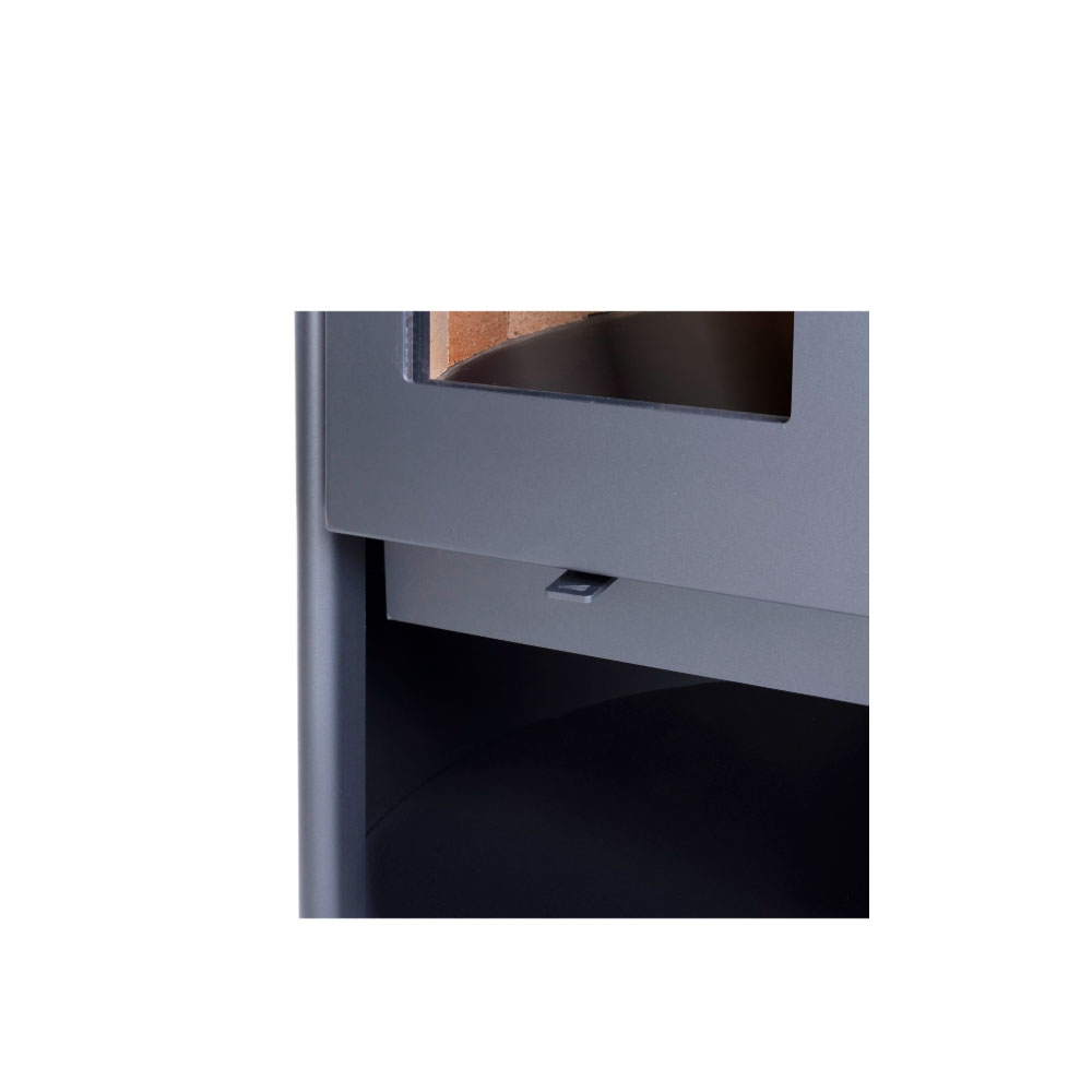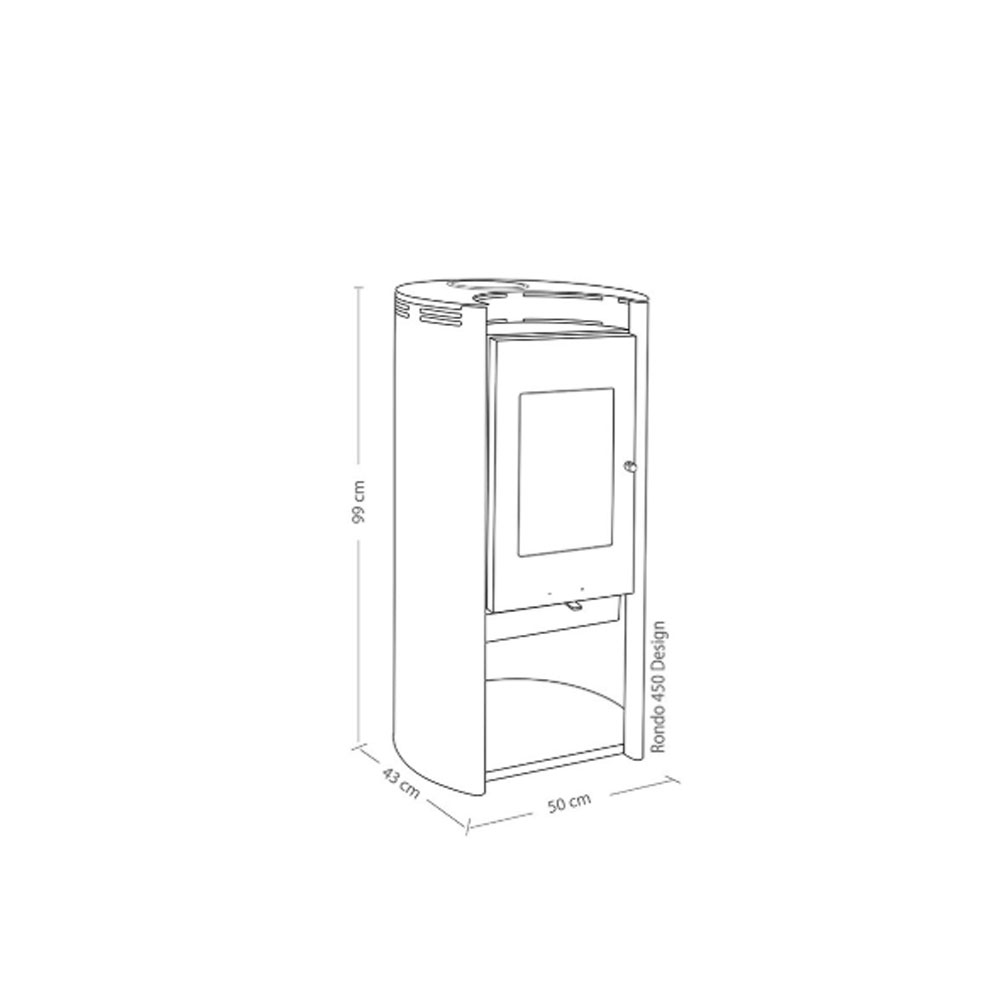 El diseño inteligente de la Rondo 450 Design Amesti no sólo se limita a su eficiencia y a su estética, sino que también ofrece un compartimiento para leña con base y un cenicero