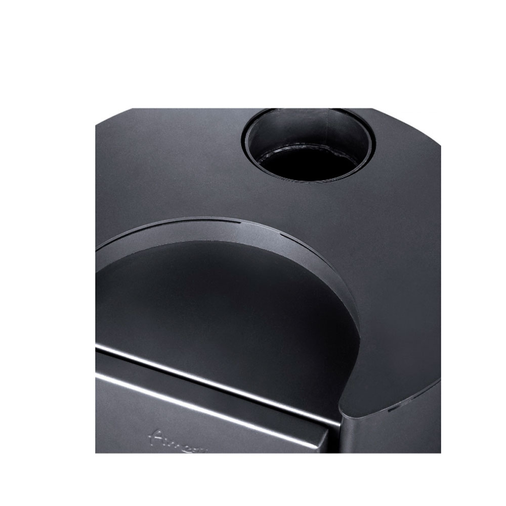 Este modelo de estufa a leña destaca por su diseño cilíndrico y exclusivo, adaptable a cualquier configuración de hogar, ya sea contra la pared, en una esquina o en el centro del espacio.