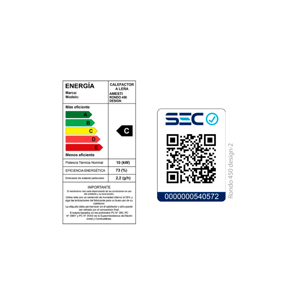 La Rondo 450 Design Amesti cuenta con una potencia de 10kW 8,598 kcal/h, proporcionando un calor efectivo y eficiente en tu hogar. Su diseño inteligente optimiza el uso de la leña seca, evitando el uso de combustibles artificiales y reduciendo así tu huella de carbono.