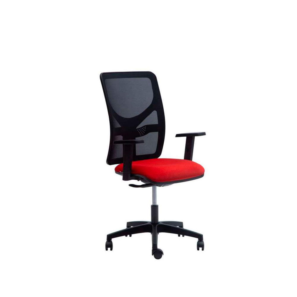 Está equipada con un innovador mecanismo sincrónico auto pesante en donde la tensión de reclinación del respaldo se ajusta automáticamente según el peso del usuario con dos distintas posiciones de bloqueo de respaldo y brazos de poliuretano regulables en altura que otorgan una agradable sensación al tacto.