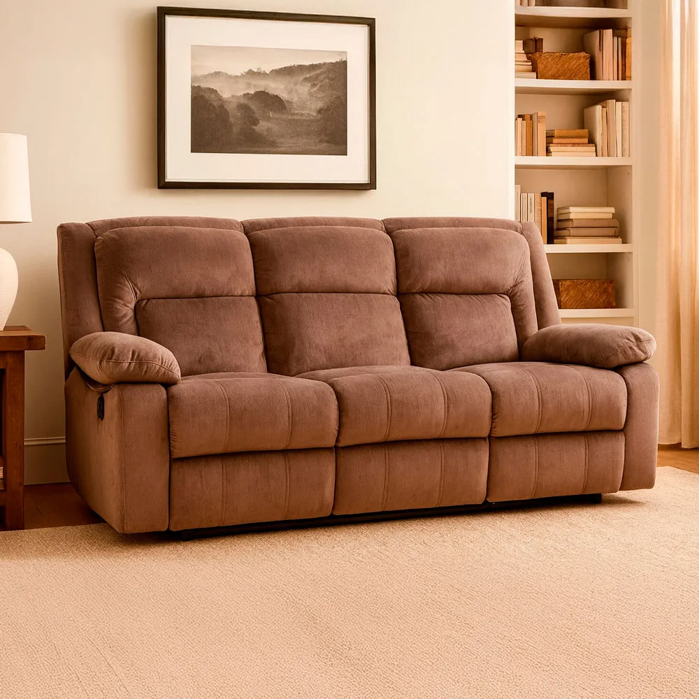 Este hermoso sofá reclinable de un cuerpo y estilo moderno, es ideal para cualquier sala de estar o salón, con un diseño ergonómico que lo hace muy cómodo. A su vez, el tapiz de poliéster de alta resistencia le da fuerza, y su relleno de espuma de alta densidad le dará a usted y a su familia muchos años de comodidad.