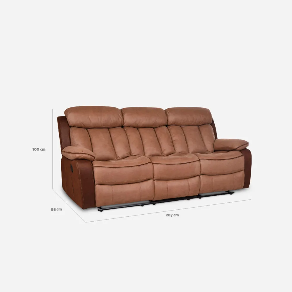 Sus dimensiones lo hacen adecuado para distintos tipos de espacios, desde departamentos modernos hasta salas amplias. Dale un toque de elegancia y confort a tu hogar con el sofá 3 cuerpos reclinable Moka.