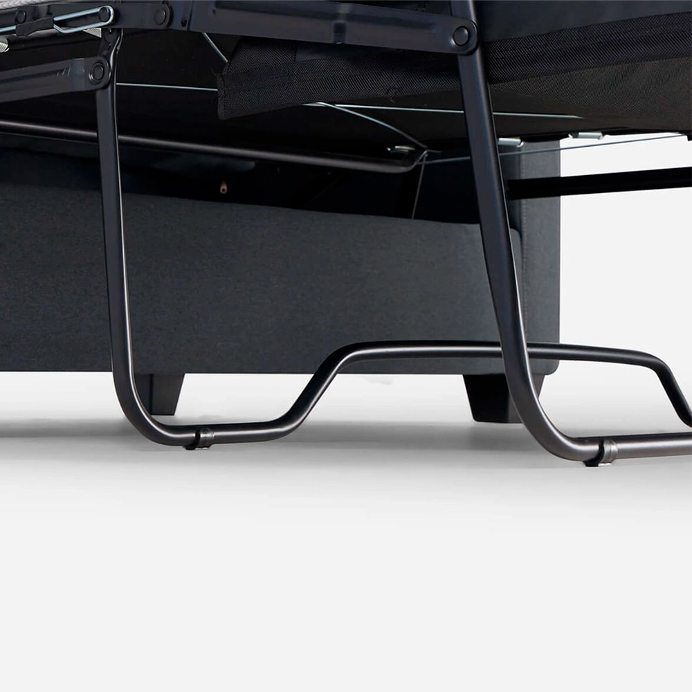 Confortable sofá cama tapizado en tela. Diseño contemporáneo práctico y funcional que otorga una solución de descanso de óptimas cualidades.