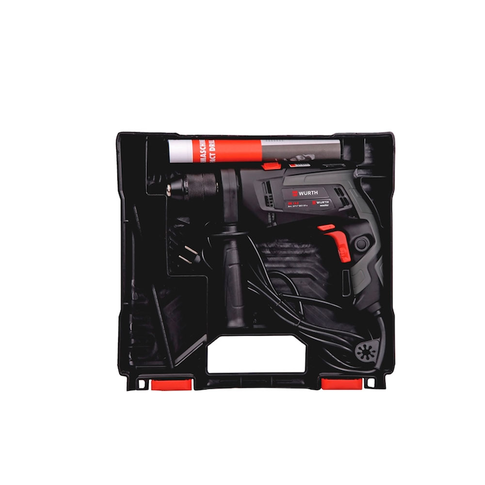 Taladro percutor ligero, compacto y potente con portabrocas metálico de cambio rápido para hasta 13 mm. Perforación rápida y una vida útil prolongada.