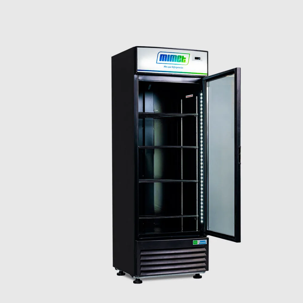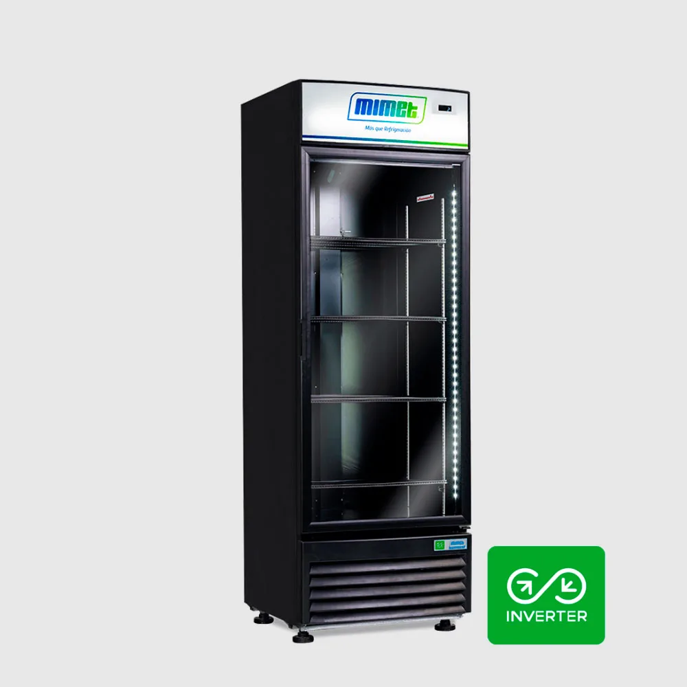Vitrina vertical de alta gama con tecnología inverter. Su puerta termo panel con gas argón y sistema LOW-E asegura máxima eficiencia energética y perfecta conservación de productos.